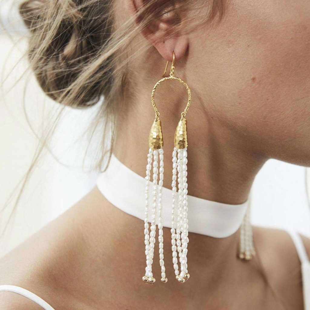 A newly launched jewelry line from Grace Loves Lace that features earrings, pendants, anklets and backpieces that work perfectly as finishing touches for any bridal look. These are timeless pieces that can be cherished and worn forever. Choose from nine styles available in both gold vermeil and sterling silver. Elegant freshwater pearls adorn a variety of delicate drop earrings and the iconic Grace Loves Lace mandala appears on a dainty necklace and anklet. Prices range from $80 to $140.