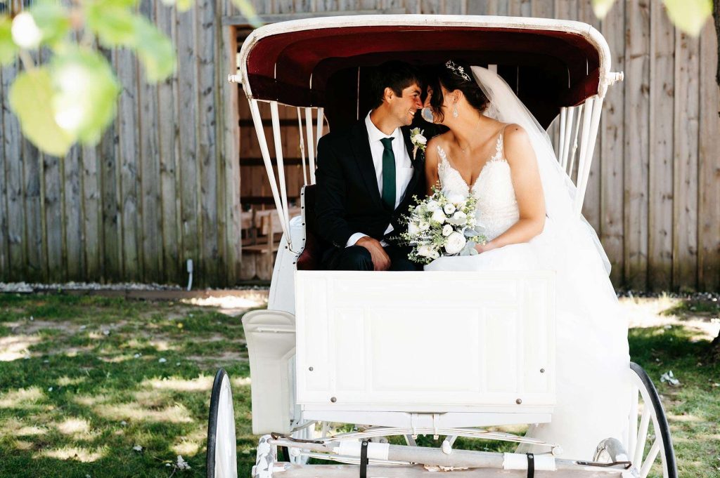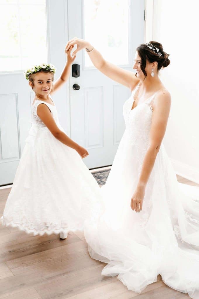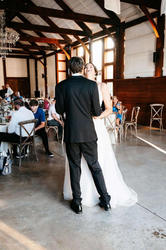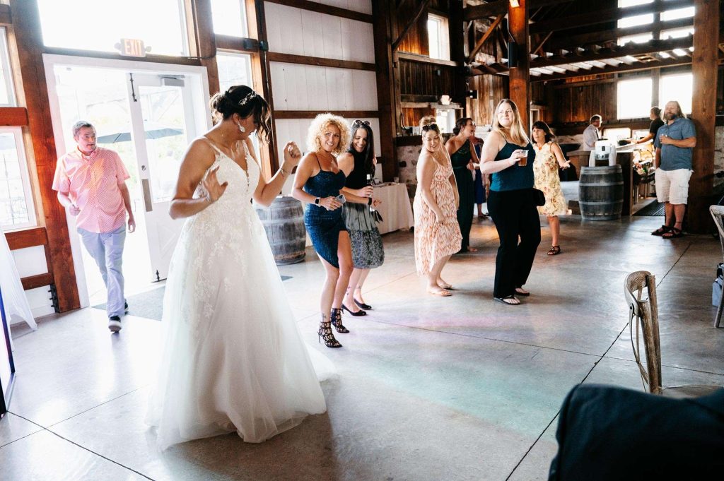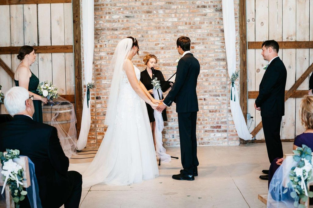 Jill and Mike decided on an all-in-one ceremony and reception at Lilac Acres Farm. “We were able to get married, have the reception, and stay overnight at the same property.” Lilac Acres is chock full of thoughtful amenities that make for a wonderful wedding. The barn has air conditioning and heating for optimal comfort whatever the weather. They provide everything from tables and chairs to full bar services. The barn has maintained its rustic feel, but with updated amenities like real bathrooms. “It was just easy. And the chandeliers made it stand out, adding elegance to the rustic aesthetic.”