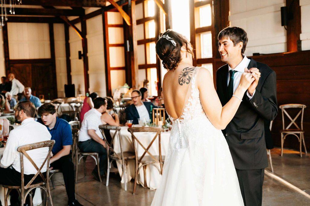 Before the ceremony, Mike and Jill did a first look. It’s one of the moments that sticks with Jill the most. “When we finally got to see each other all dressed up for the first time, it’s like all the weight from planning and suspense was released. We were able to take the nerves off each other and have this special moment that was just us.” Jordyn at Smoke Photography was there to capture the moment. The ceremony itself was more spiritual than religious, all about joining the two families together and being each other’s partner in life and on the disc golf course (for a little humor).