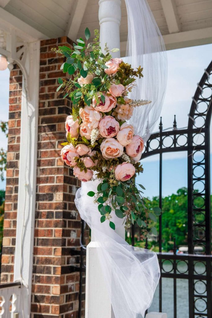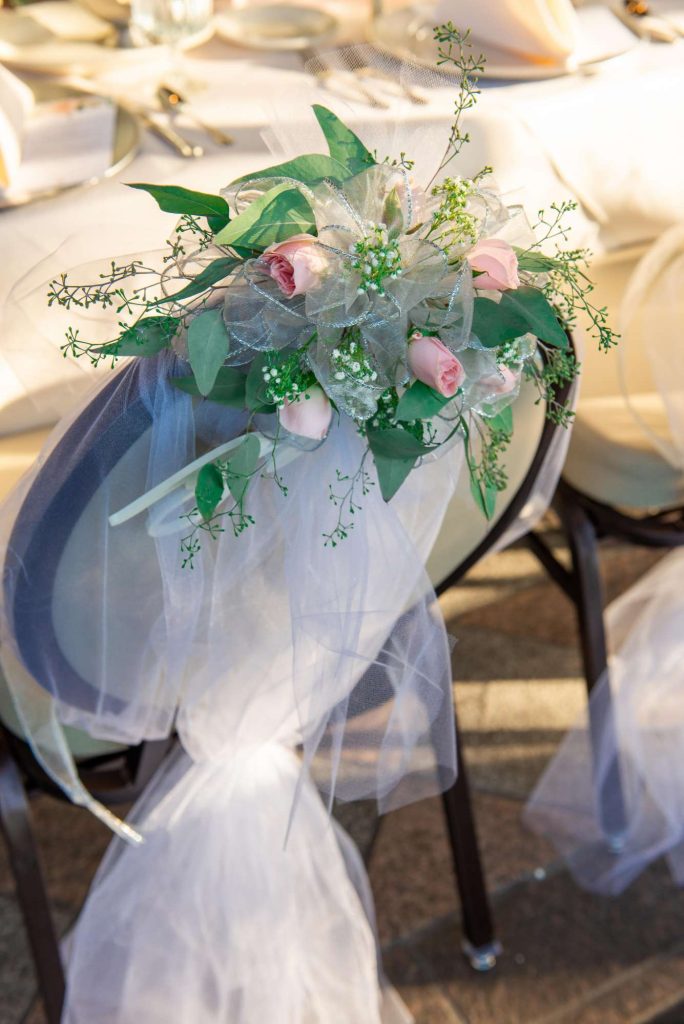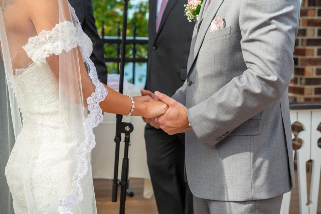 During their Golden Mast ceremony, Karissa and Jeremy had a wine ceremony. There was a wine box with their favorite bottle of wine inside, and during the ceremony, the bride and groom’s parents came up and put a message they had written into the wine box. “We also wrote letters to each other about why we were getting married and what we love about each other. We get to open the letters and drink the wine on our five-year anniversary.” Lending music to the ceremony was a violin and cello duet courtesy of Gabriel’s Horns, and Karissa’s sister-in-law sang “Can’t Help Falling in Love with You.”