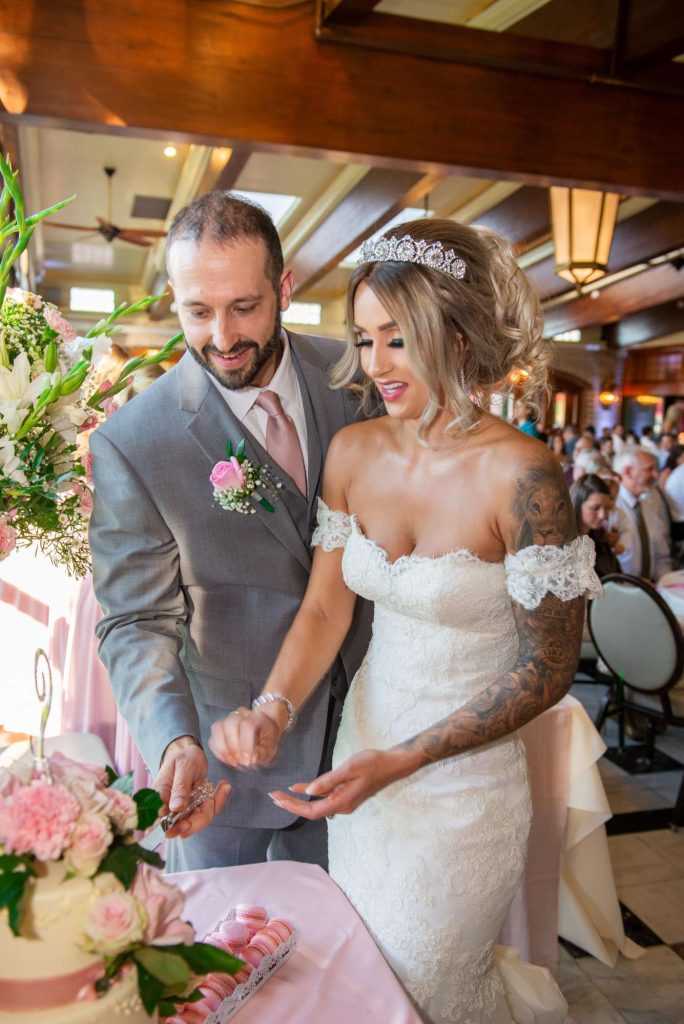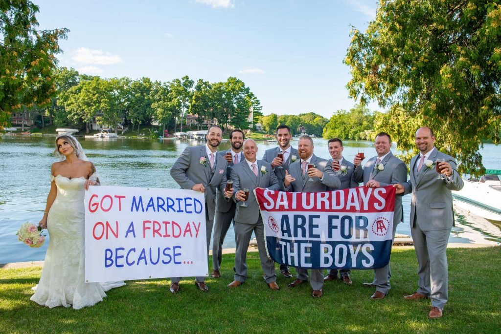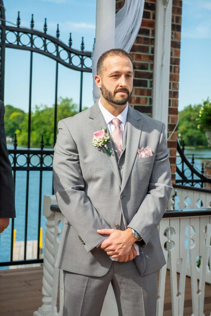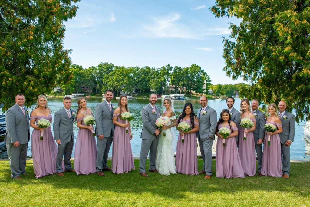 Jeremy and Karissa planned an August wedding at the Golden Mast Inn on Okauchee Lake. “It’s such a beautiful location on the water. We love the classic feel and dreamy atmosphere.” The theme of their wedding was romantic, chic, and elegant with a color scheme of blush pink, silver, and white. Karissa found her Sottero & Midgley Addison dress at Amelishan Bridal in Hubertus. She says the one thing she would have changed about the planning process: “For a larger wedding like ours, I would have budgeted for a wedding planner or coordinator. I had so many questions!”