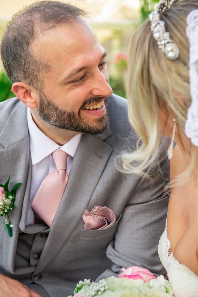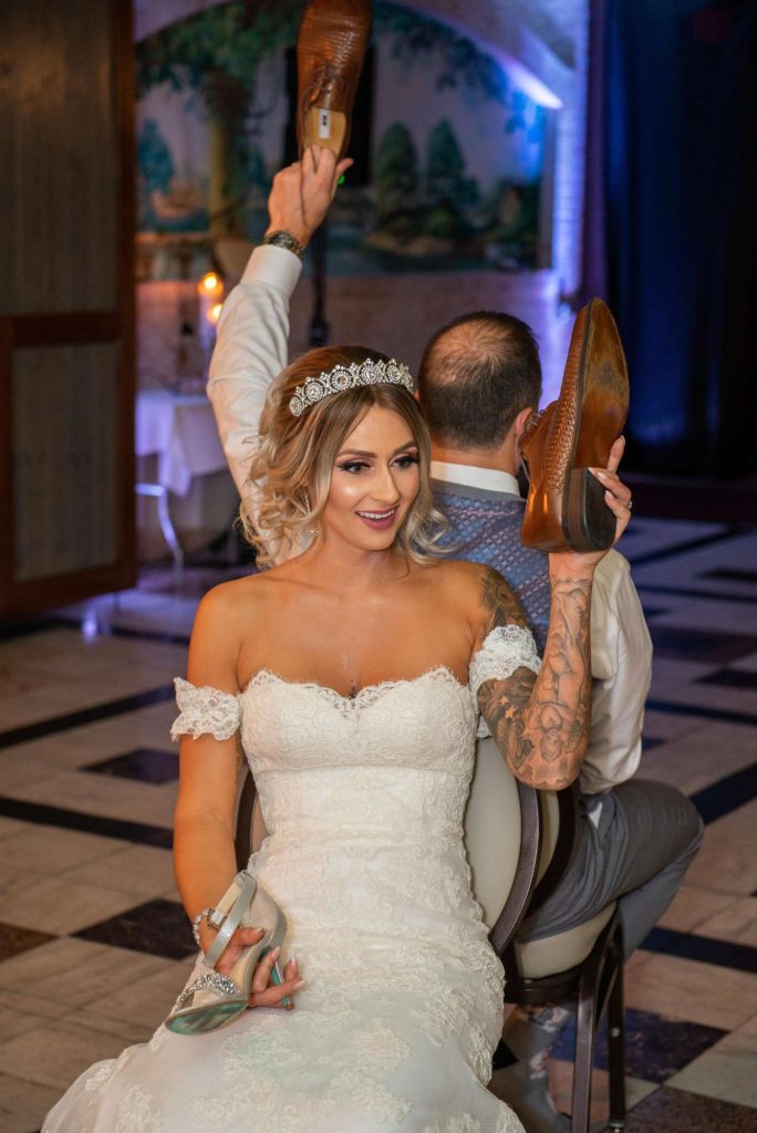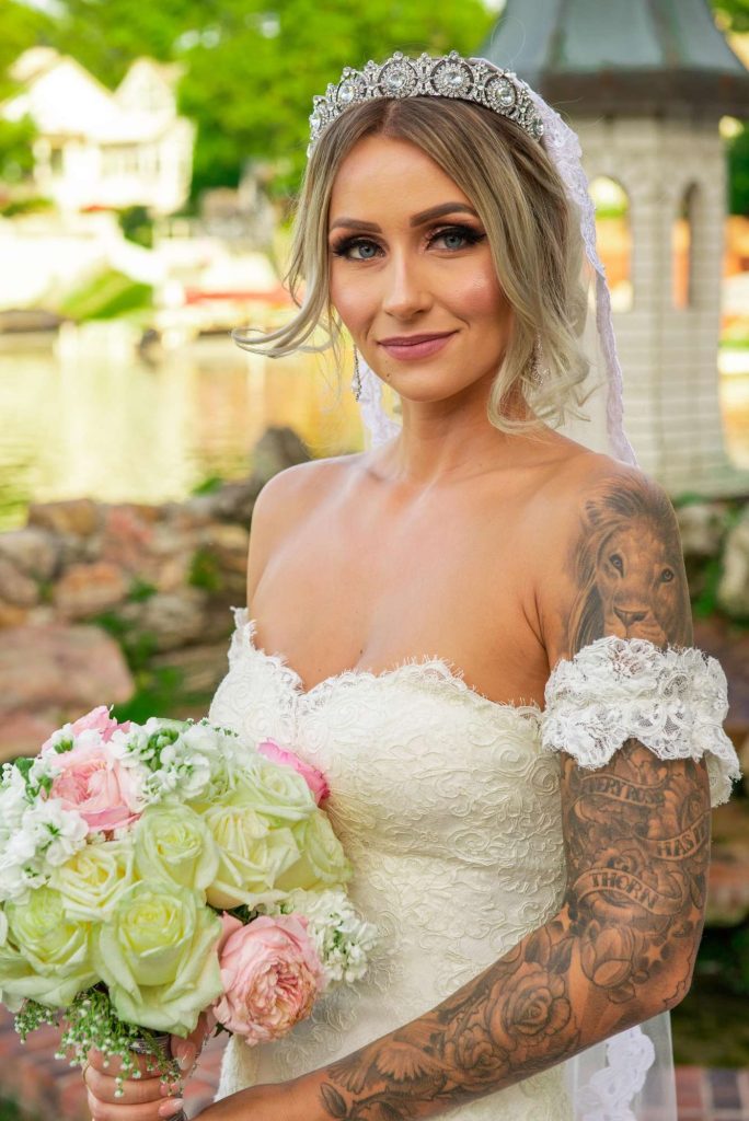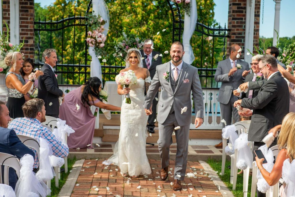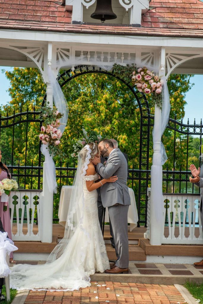 Jeremy and Karissa planned an August wedding at the Golden Mast Inn on Okauchee Lake. “It’s such a beautiful location on the water. We love the classic feel and dreamy atmosphere.” The theme of their wedding was romantic, chic, and elegant with a color scheme of blush pink, silver, and white. Karissa found her Sottero & Midgley Addison dress at Amelishan Bridal in Hubertus. She says the one thing she would have changed about the planning process: “For a larger wedding like ours, I would have budgeted for a wedding planner or coordinator. I had so many questions!”