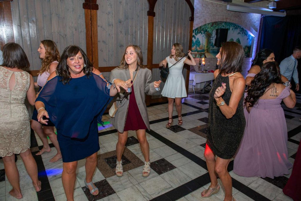The Golden Mast catered and bartended the entire evening. Dinner began with a house salad. For entrées, guests had a choice of sautéed chicken breast in a mushroom wine sauce, baked salmon fillet in a bourbon maple glaze, or vegetarian mushroom ravioli with fresh zucchini, squash, and broccoli florets in a tomato basil beurre blanc. Sides included garlic mashed potatoes, fresh-baked rolls, and French onion cream cheese paté.