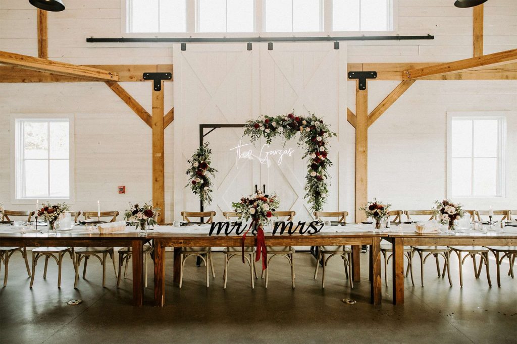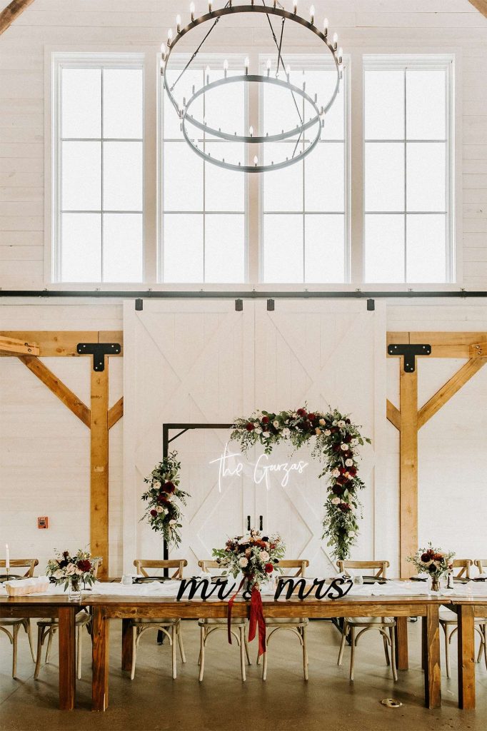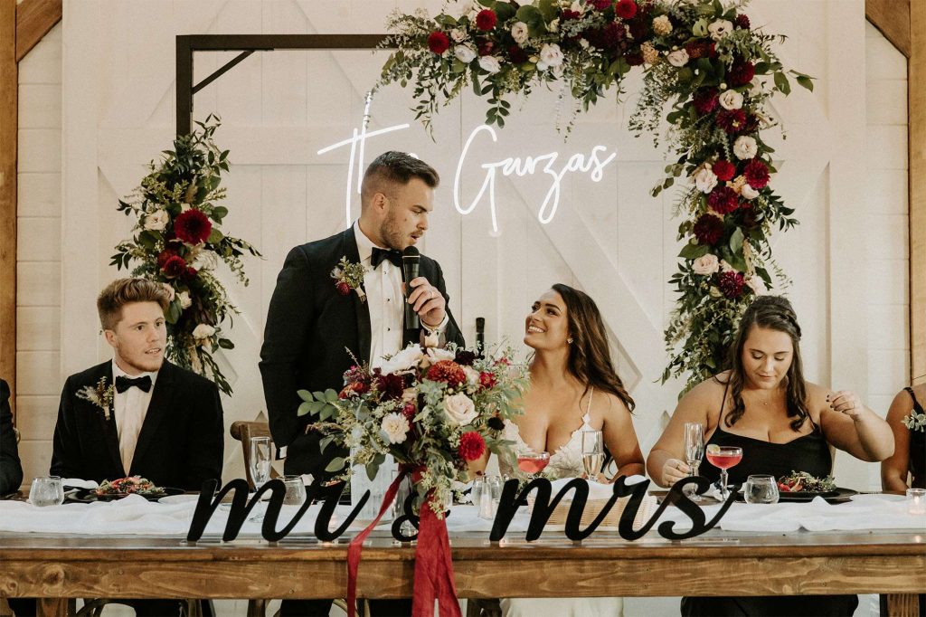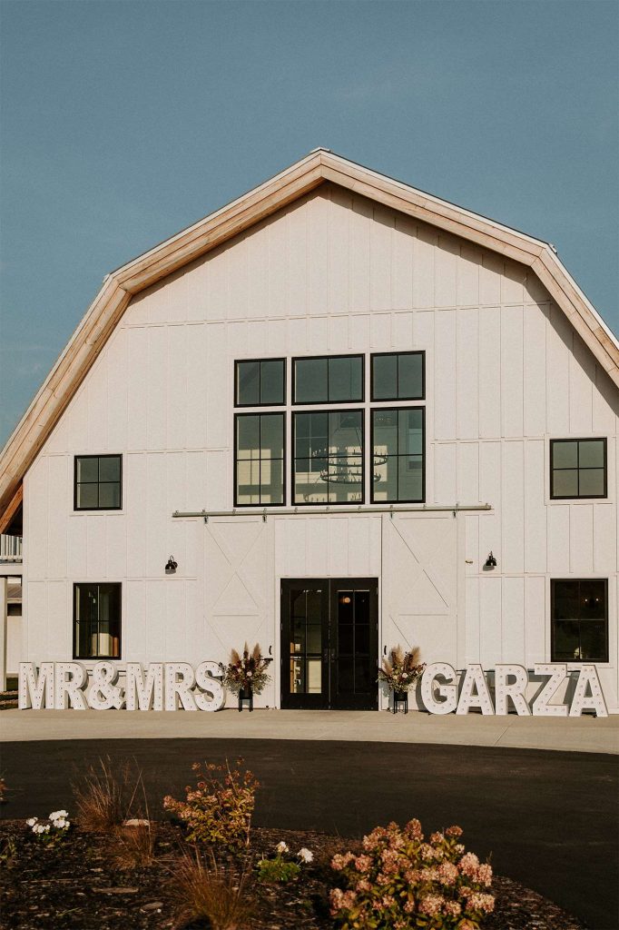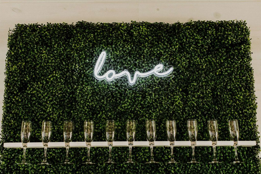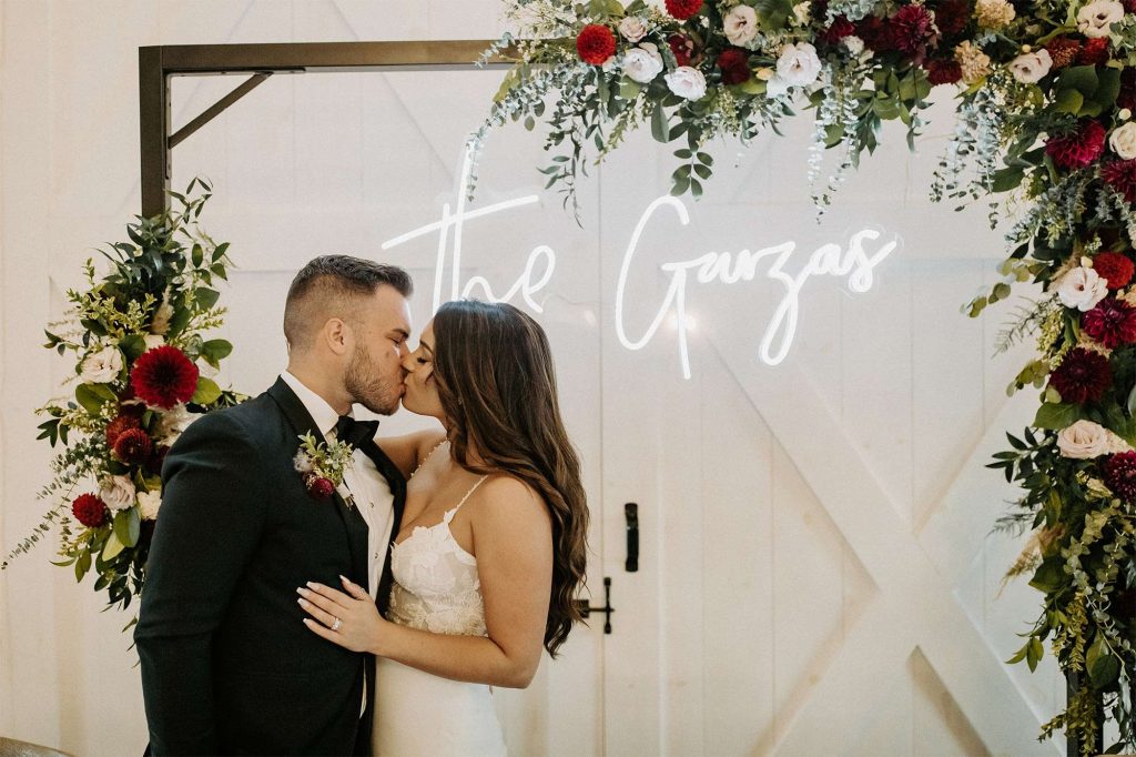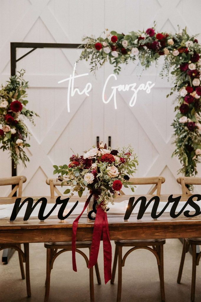 To bring some extra pizazz to the event, Katelyn and Tommy worked with Alpha-Lit Green Bay for the large custom marquee letters outside the front of the venue and Sketch & Etch for the custom neon sign behind the head table. “Alpha-Lit Green Bay was phenomenal to work with! They had some of the best communication and the marquee letters were a huge statement piece at our wedding. They set them up just as we envisioned in a quick and efficient manner. They were very courteous and friendly throughout the installation and removal at the end of the night.”