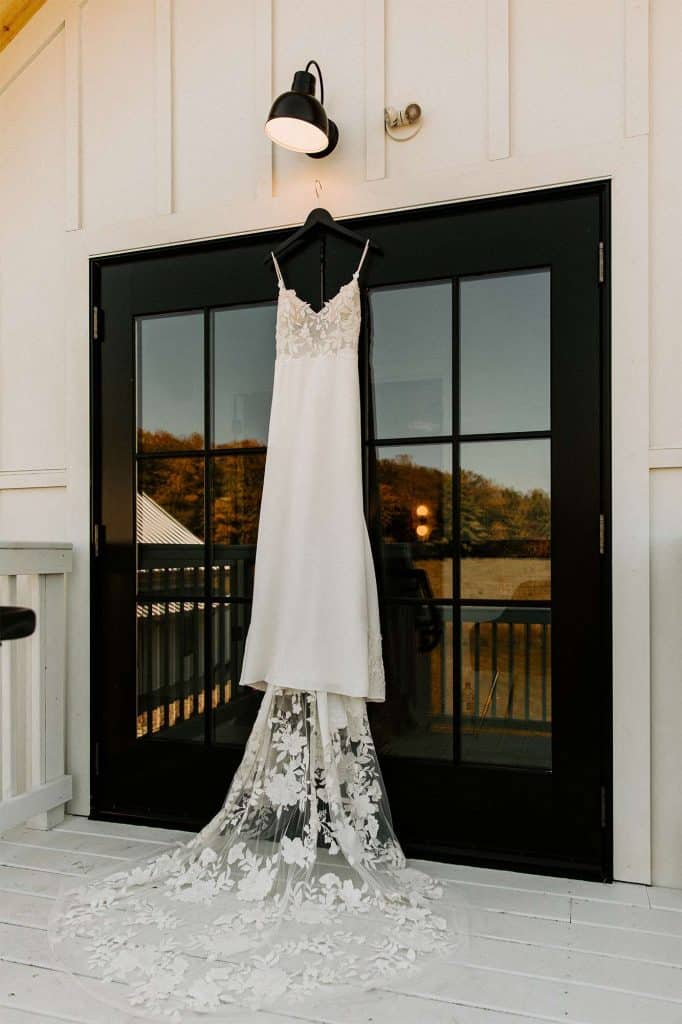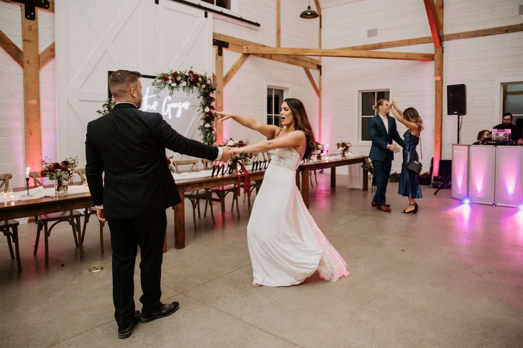 One of the best moments of the night for Katelyn and Tommy was their first dance. “Being more private people, we decided to sneak away, just us and our photographer, while guests were dancing and socializing to have our first dance alone in the forest retreat under string lights. We brought a portable speaker out while the sun was setting and had such a beautiful, private dance as newlyweds with only our photographer there to capture the special moment.”