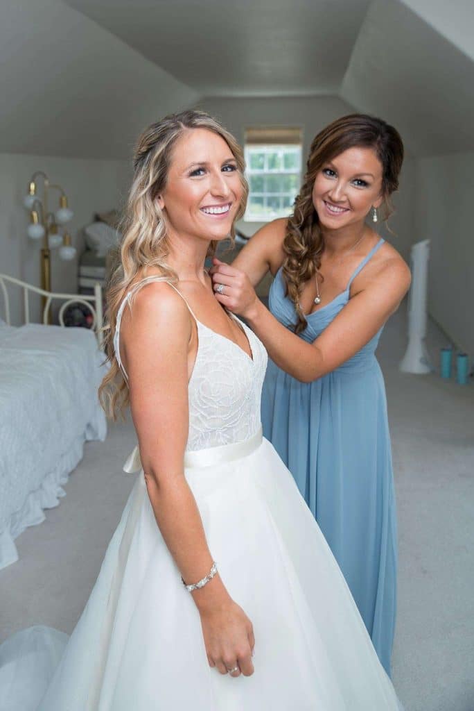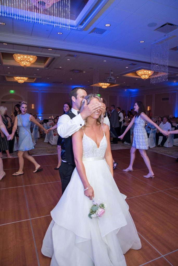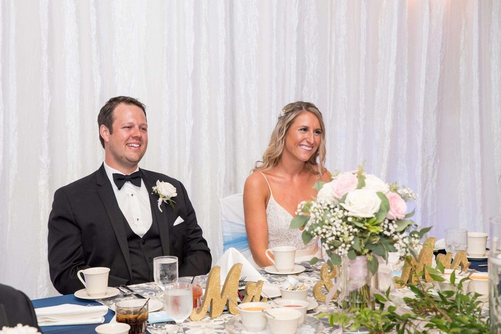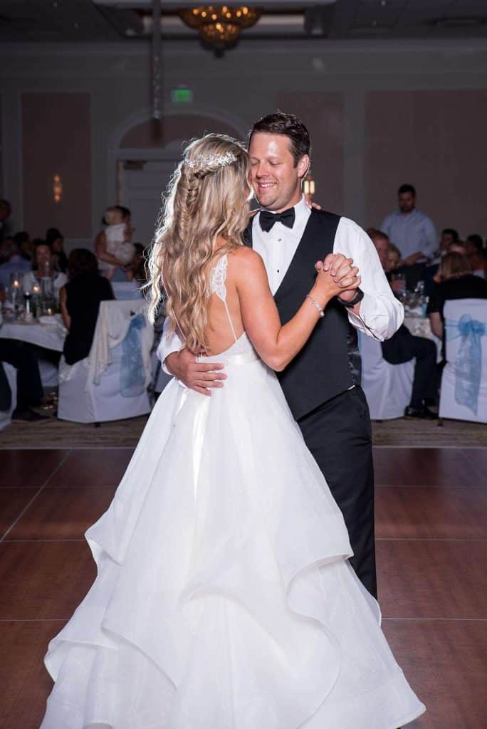 The reception was held at Ingleside Hotel in Pewaukee. While planning, they attended the Lake Country Bridal Show at the Ingleside. “We booked Heavenly Creations after seeing their work.” Heavenly Creations ended up decorating the Ingleside space on the day of the wedding. “They made everything so beautiful and so easy!” Walking into the reception and seeing how beautiful everything looked — that’s the moment that sticks with Kati the most.