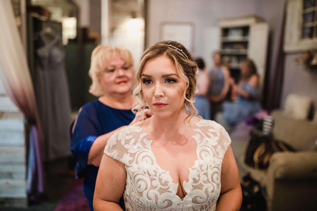 Katie found her Hayley Paige bridal gown at Bliss Bridal. “Excellent service!” she says. “I was able to bring a number of my family and friends along. They have a lot of beautiful and unique dresses there, available in many sizes to try on.”