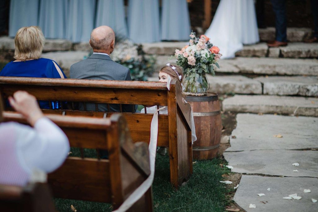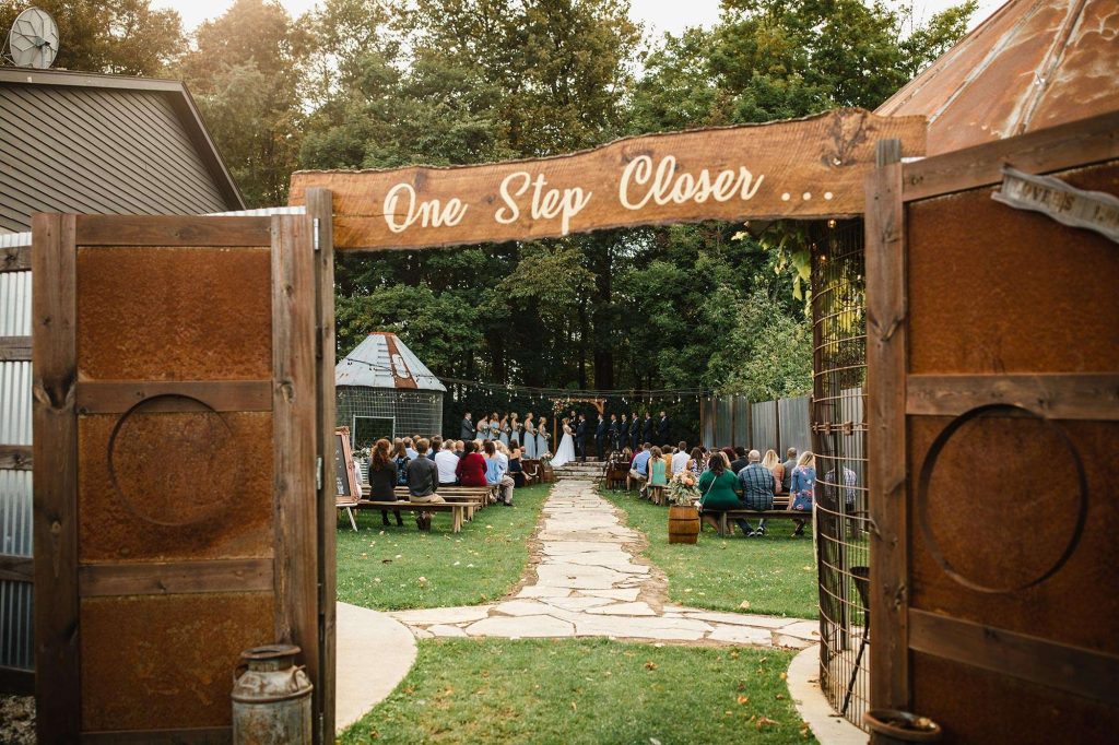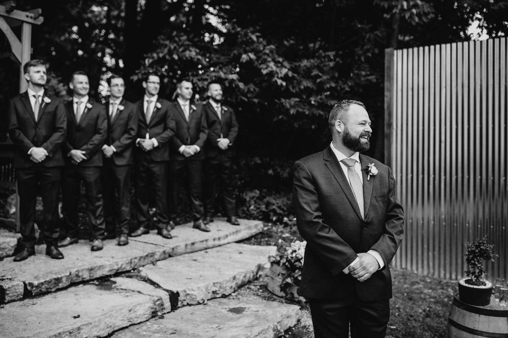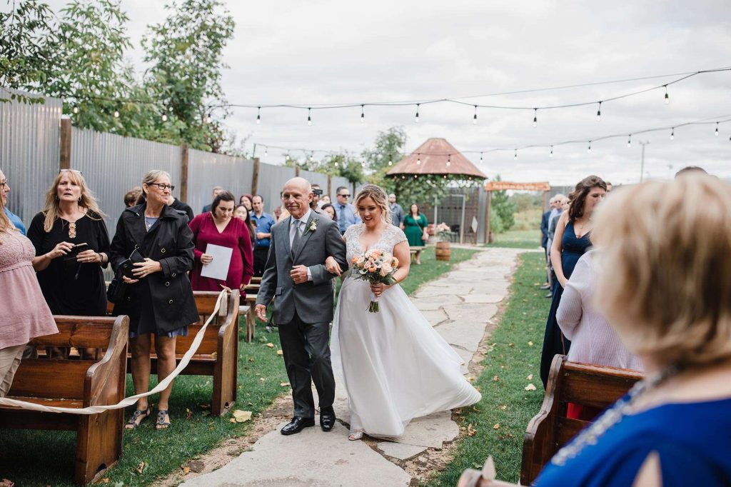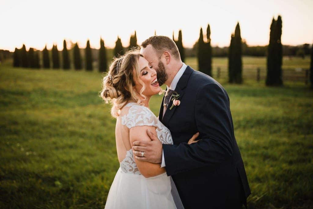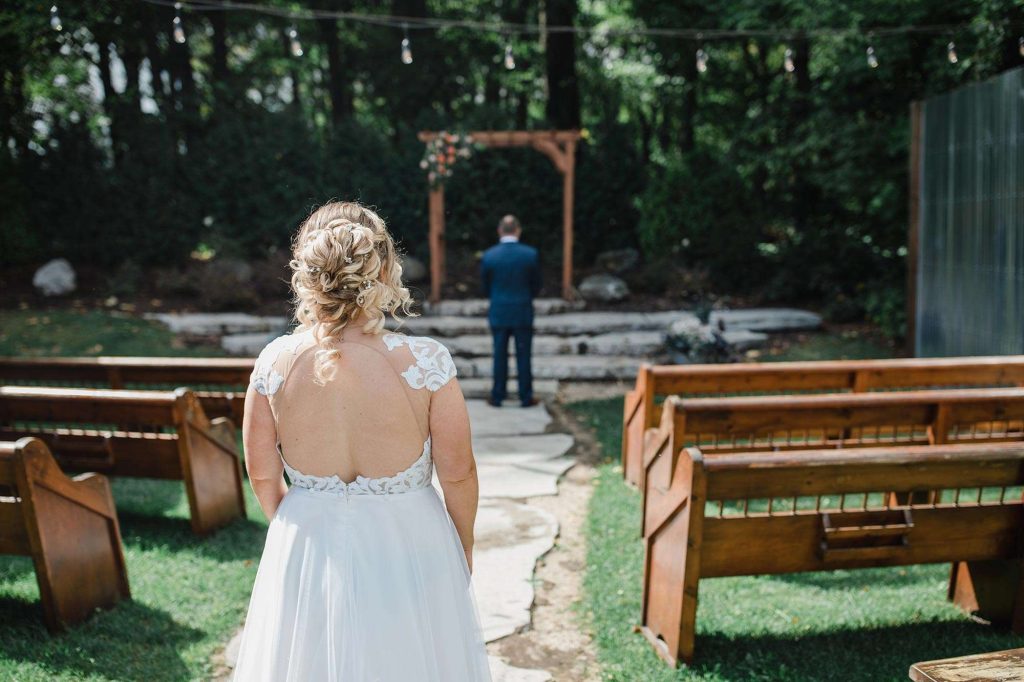 Because Jesse and Katie are both musicians, they were very particular about their ceremony music. They asked a couple of their musician friends to play during the ceremony. Katie created an instrumental arrangement of Bon Iver’s “Holocene” as well as a version of Glen Hansard’s “Falling Slowly.” Katie says, “I created different lyrics for this song to match our relationship and our wedding a little better and worked with the musicians to make it all come together smoothly.” For a unity ceremony, Jesse and Katie watered a bonsai tree together as a symbol of growth and balance in their relationship. But the best part? When the sun came out on this otherwise cloudy day and lit up the trees behind the bride and groom. “It was really cool!”