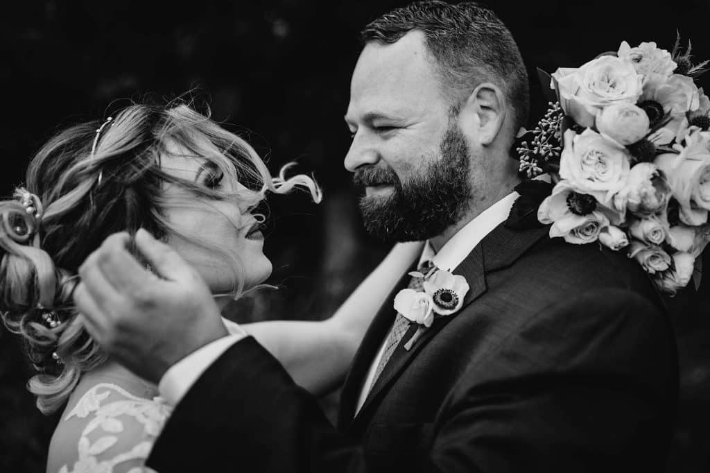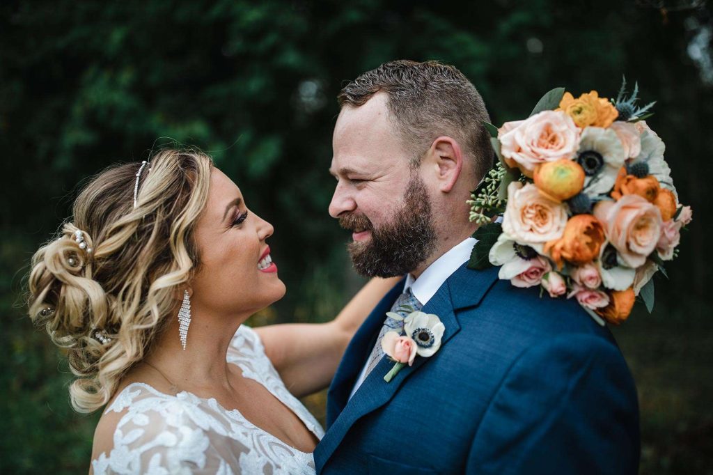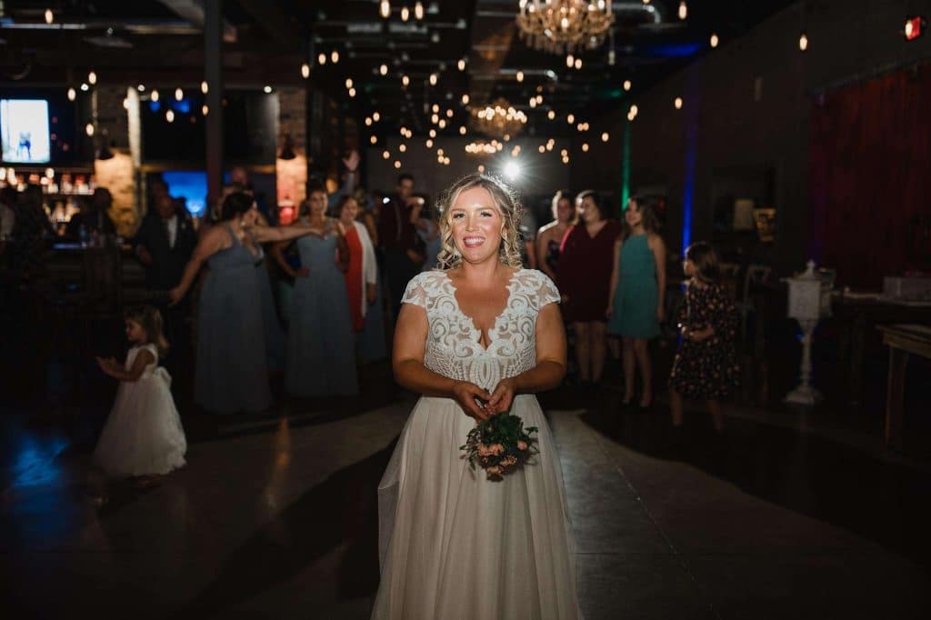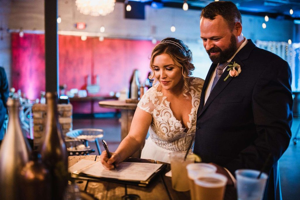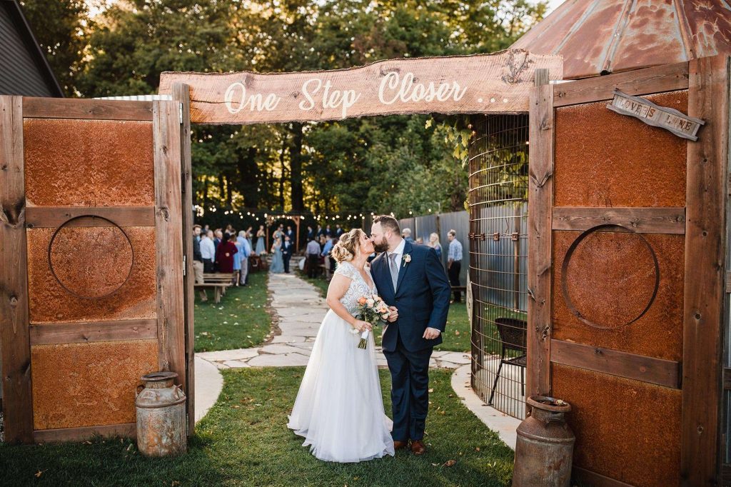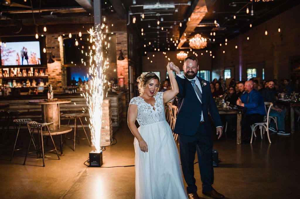 But even with the live music, the fireworks, the coffee bar, the gorgeous venue, and the photo-video booth, Katie says one of her favorite parts of the night was a quiet moment spent alone with Jesse. “Like I said, our wedding happened to land on Friday the 13th with a full harvest moon,” she says. “At one point, someone asked me if I’d seen the full moon yet. Realizing I hadn’t, I grabbed Jesse and we ran outside alone to look at it. It was only for a few minutes, but it was one of the only times on our wedding day that we really got to spend alone together. It was really beautiful.”