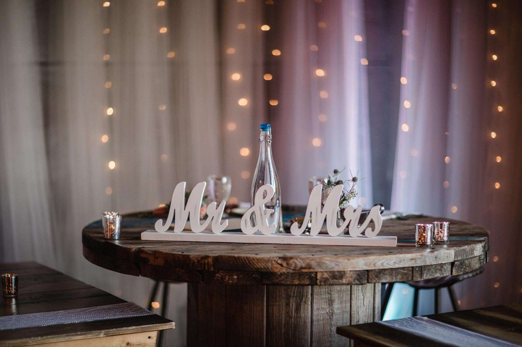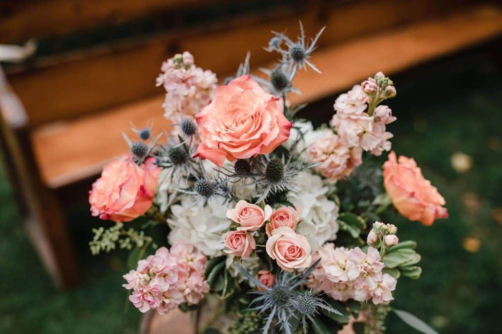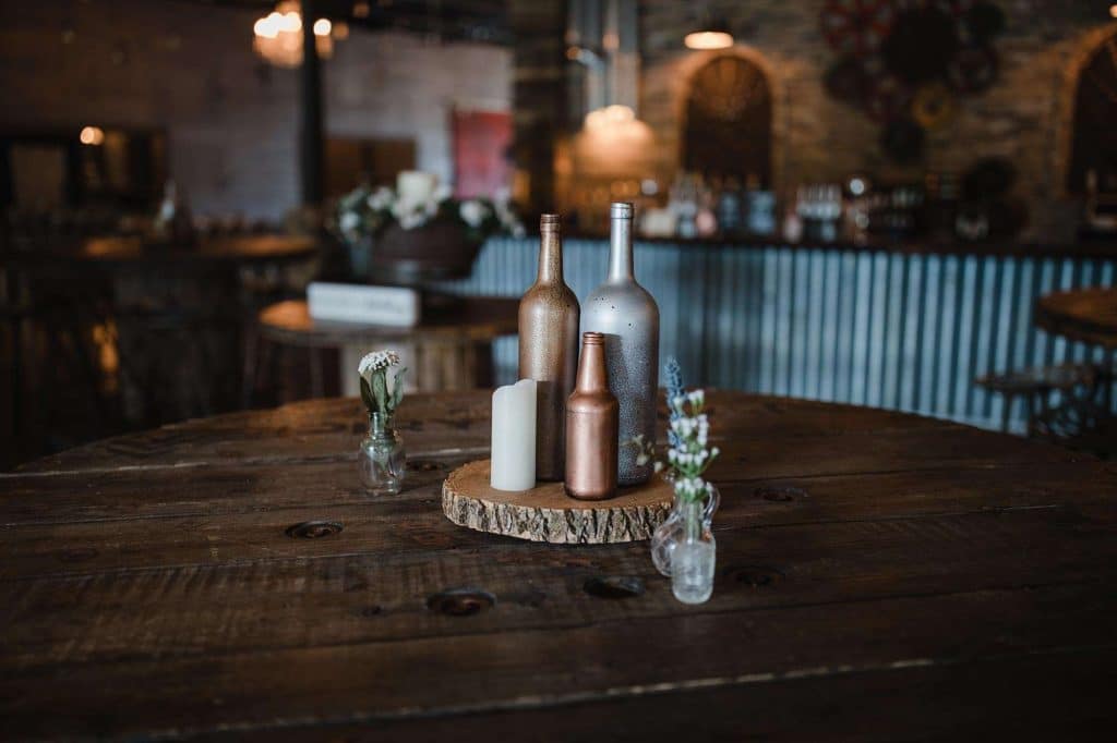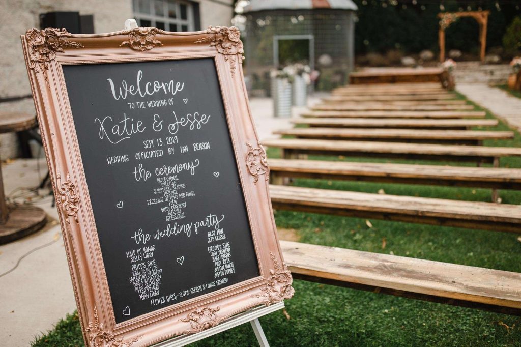Jesse and Katie’s reception started with cocktail hour and passed hors d’oeuvres. Live acoustic music filled the air. At the time, Katie owned a coffee business, so there was also an iced coffee bar featuring some of her company’s coffee as well as other favorite local brands of cold brew. “We also had little bags of coffee as thank-you gifts for our guests.”