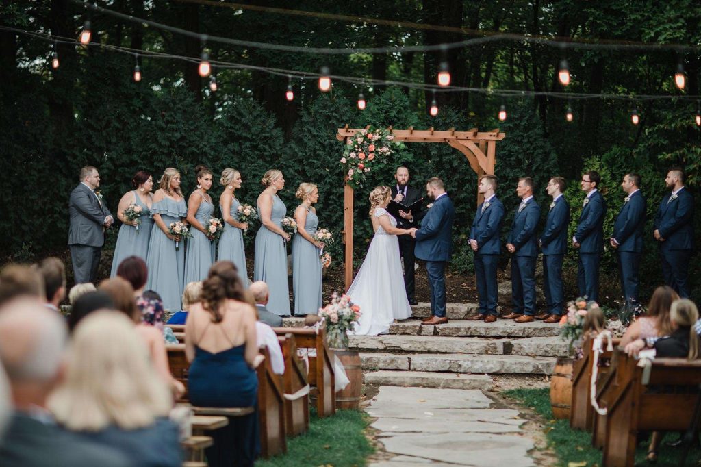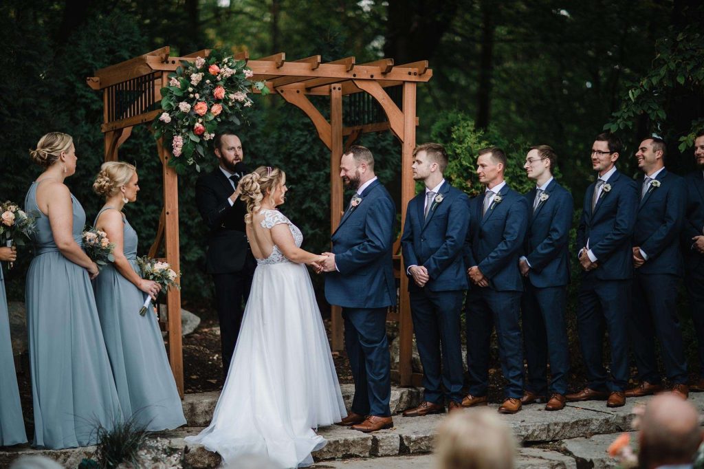 Katie and Jesse chose Terrace 167 for both their ceremony and reception. “We picked it because we wanted an outdoor wedding in a natural setting, but an indoor space for the reception. Terrace 167 met all our needs! For the ceremony, we had a natural wooded area as a backdrop. For the reception, the space was already decorated to our taste, so we didn’t have to do much. The people at Terrace 167 were also very detail-oriented and coordinated with all our vendors. They were basically our wedding planners for the day, which really helped!” Terrace 167 also offers a shuttle service, which Jesse and Katie took advantage of as well.