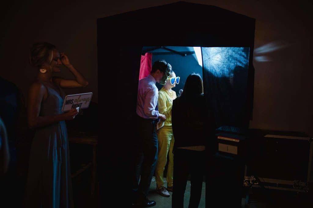 In addition to live acoustics, Jesse and Katie hired Xcite Entertainment to infuse the day with music and unforgettable moments—like indoor fireworks during the grand march and an awesome photo booth, complete with a video feature. “Guests could leave a video message to us. The photo booth also had some really great masks, some of which were huge Halloween-style masks. Given that our wedding was on Friday the 13th and fell on a full harvest moon, it was very fitting!”