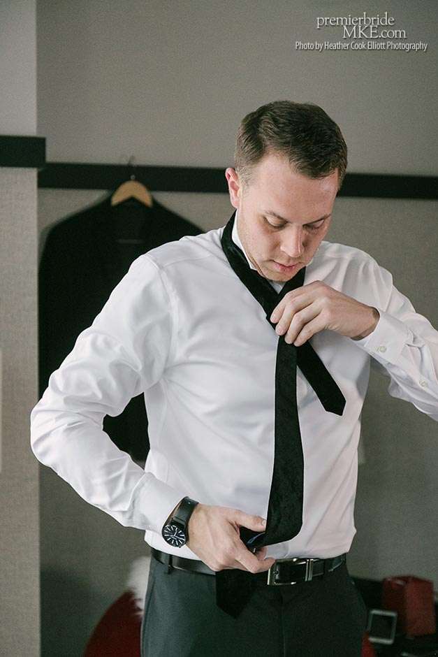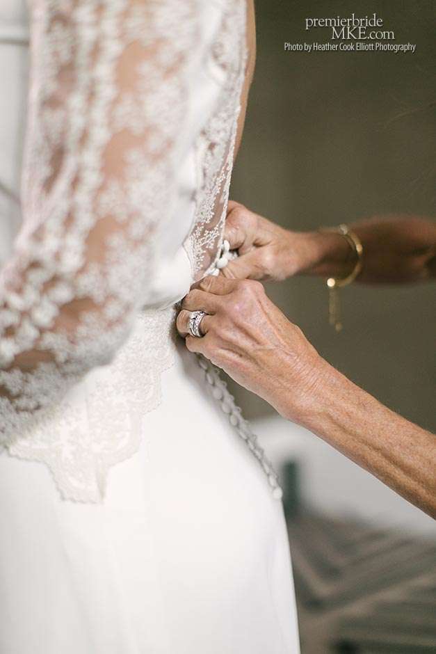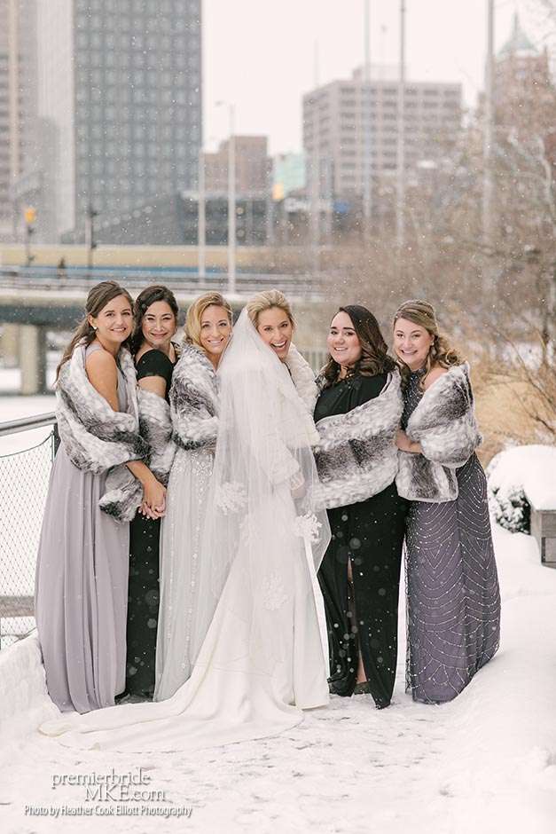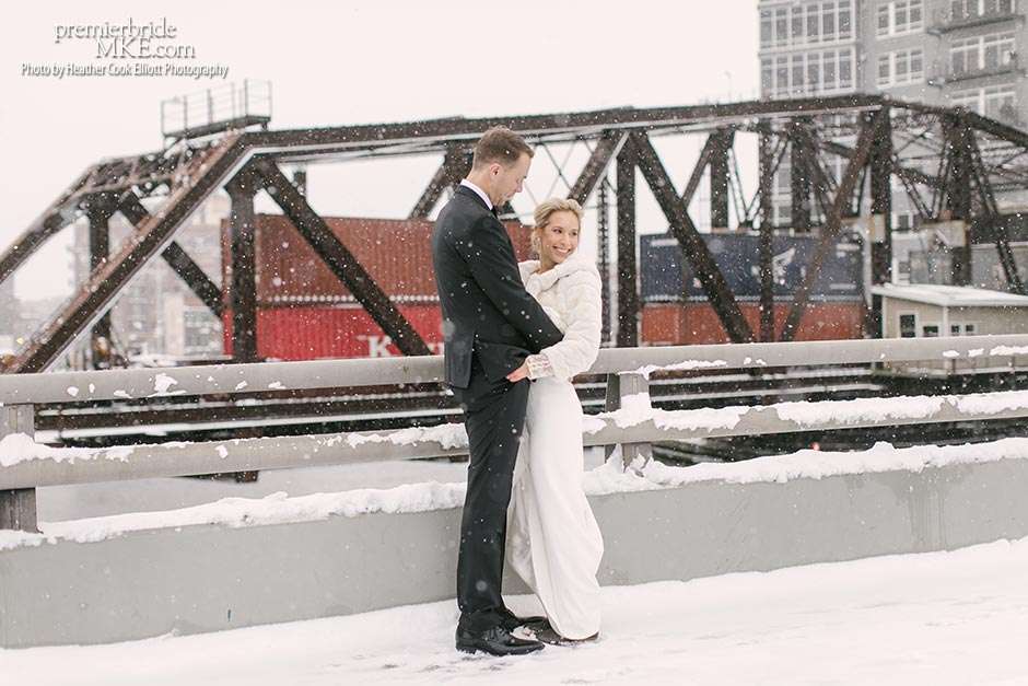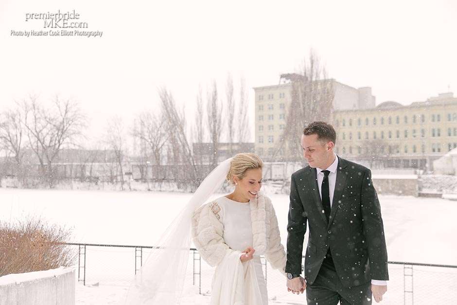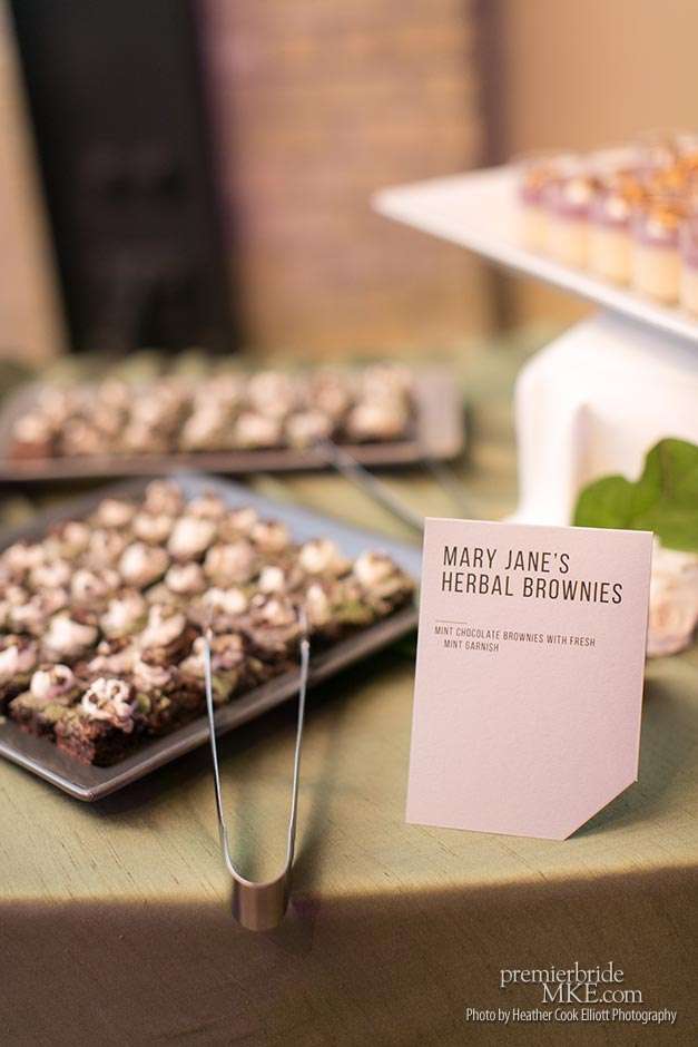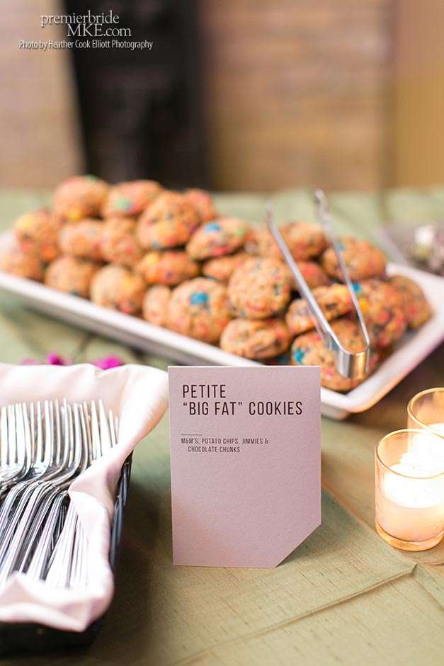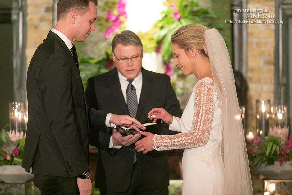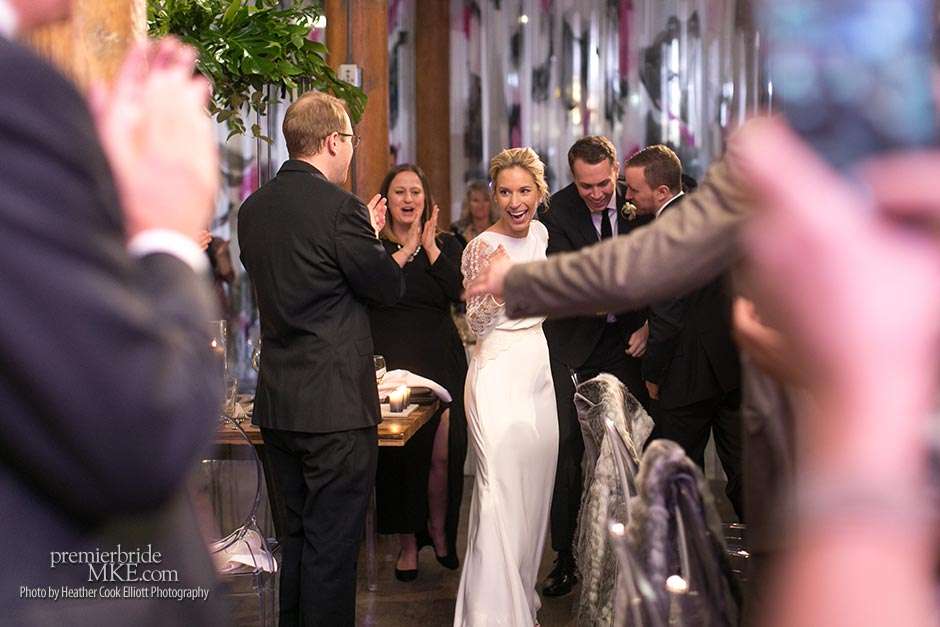 Though the two planned a January wedding at the Pritzlaff, they were determined to keep things as bright and summery as the music that brought them together. “The Pritzlaff was the first venue we saw and we knew immediately we wanted to get married there. We loved the feeling the building gives—historic yet modern, open rooms, cream city brick, wood ceiling and structures, a beautiful built-in bar. A huge reason we chose the Pritzlaff was that we could create our very own vision and customize every little detail if we wanted.”