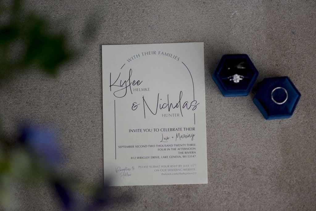 Kylee and Nick celebrated the greatest day of their life at The Riviera Ballroom in Lake Geneva. One of their close friends served as their officiant, which was so special. The couple also wrote and recited their own vows. The only song that Nick had requested throughout the entire day was the one his bride walked down the aisle to – “First Date” by Taylor Acorn, a cover of his all-time favorite Blink-182 song. Upon hearing the song and grabbing each other’s hands, all of their nerves were completely gone.