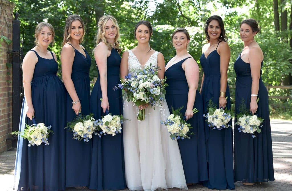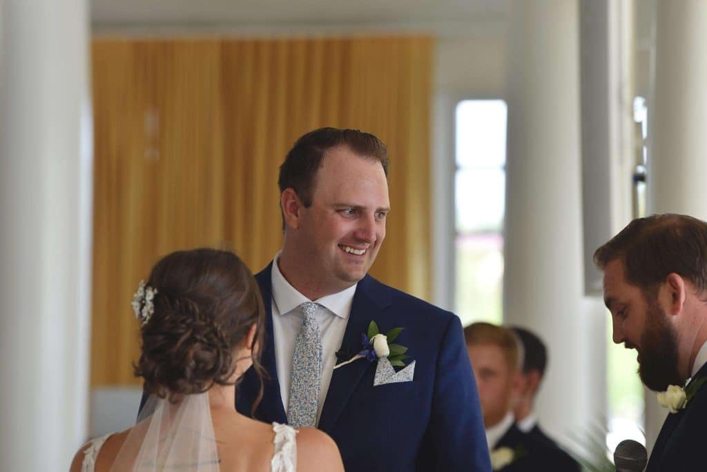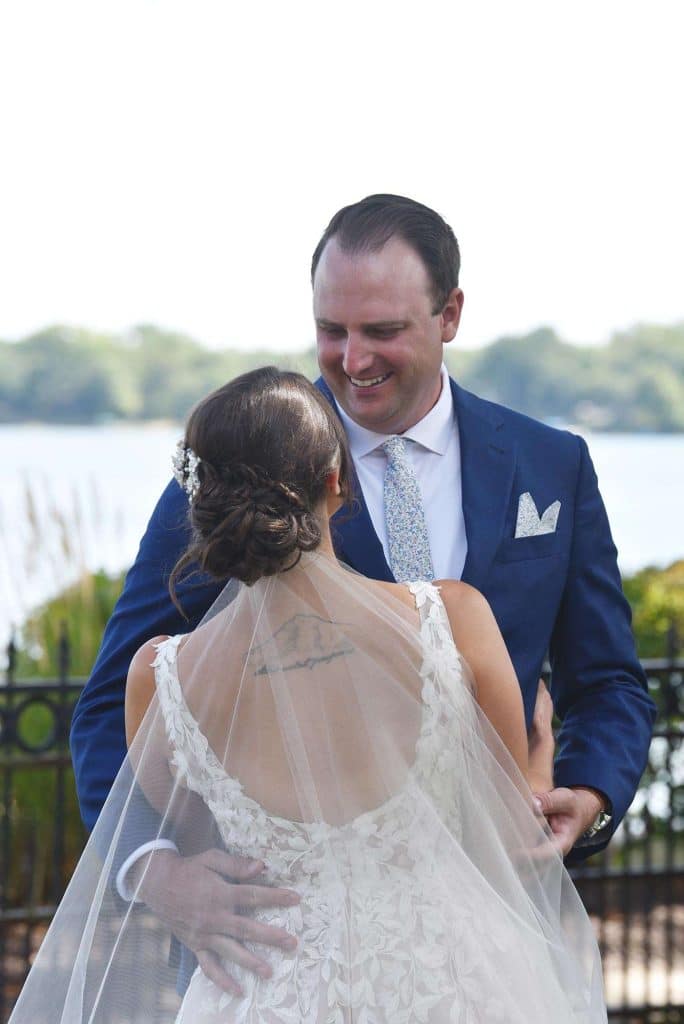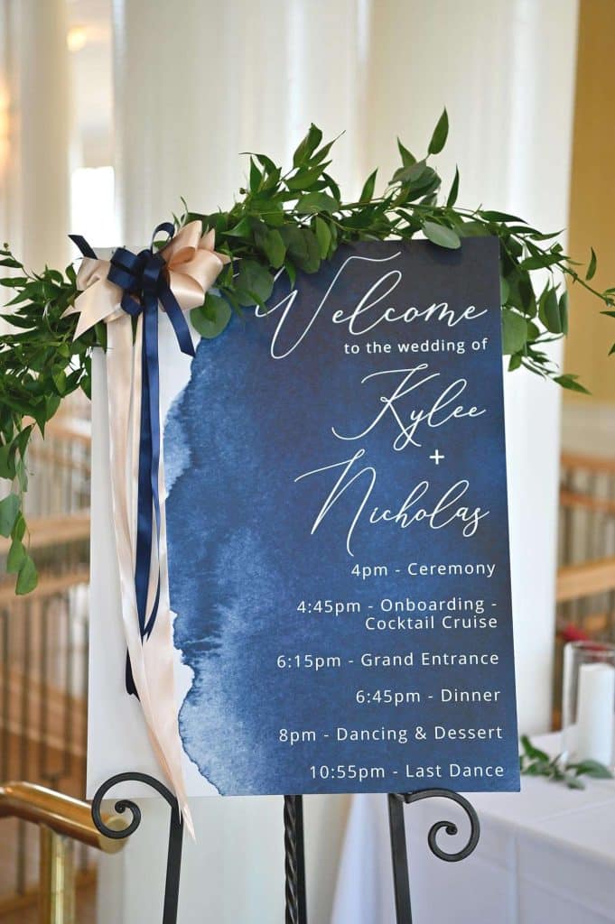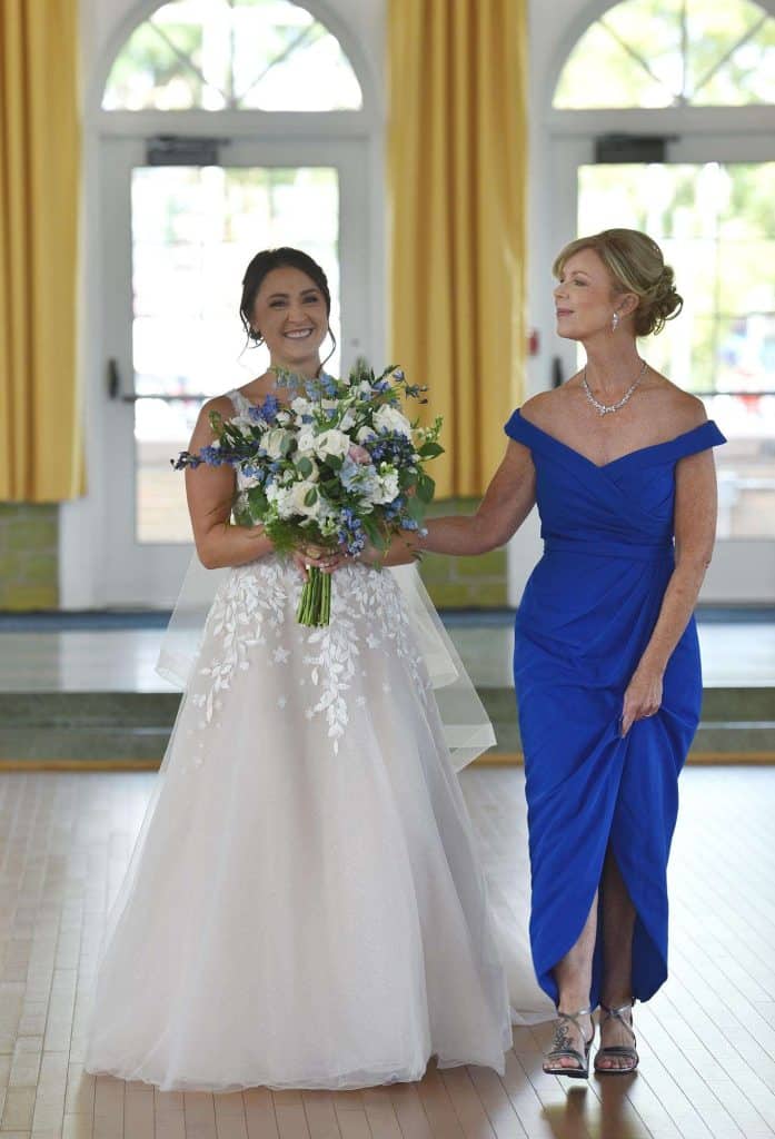 Kylee and Nick’s wedding color palette predominantly included navy and cream. Gia Bella Flowers & Gifts in Burlington created a gorgeous arch and provided all of the greenery and floral elements.