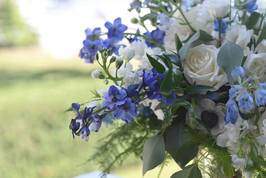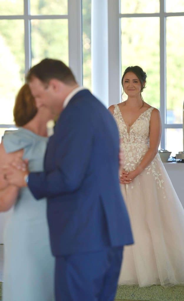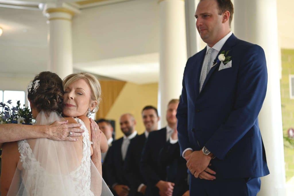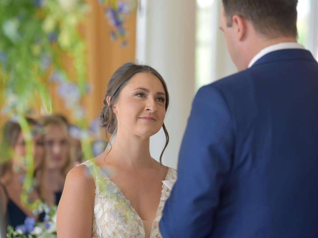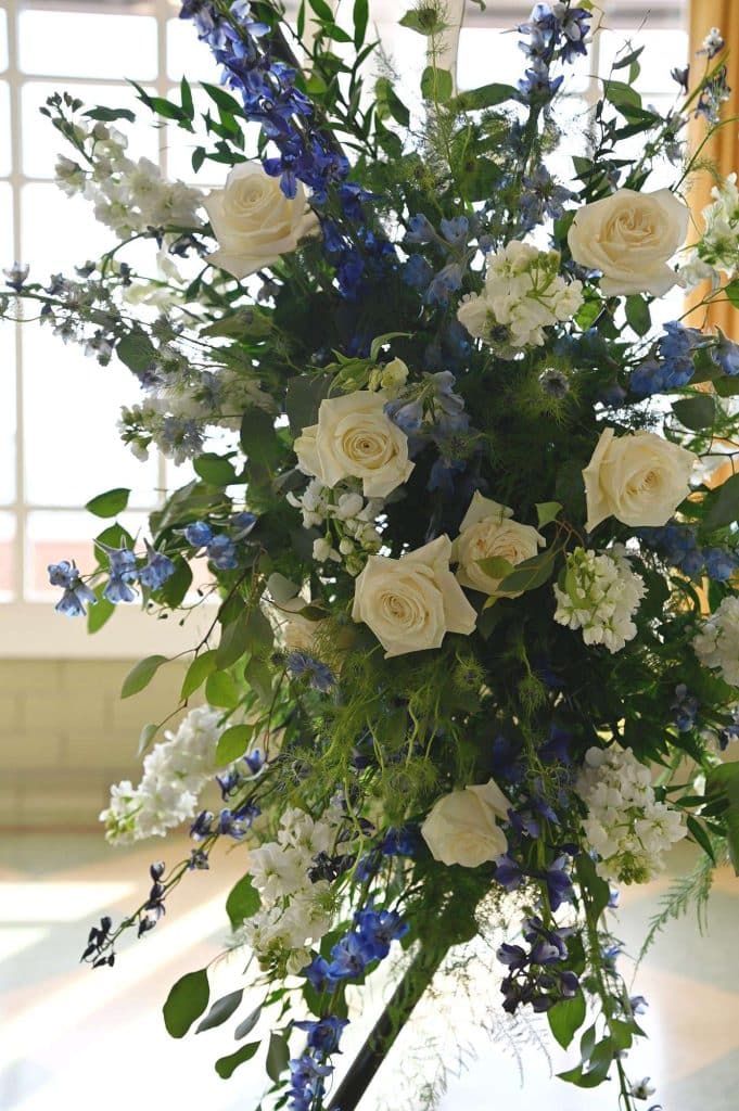 Kylee and Nick’s wedding color palette predominantly included navy and cream. Gia Bella Flowers & Gifts in Burlington created a gorgeous arch and provided all of the greenery and floral elements.