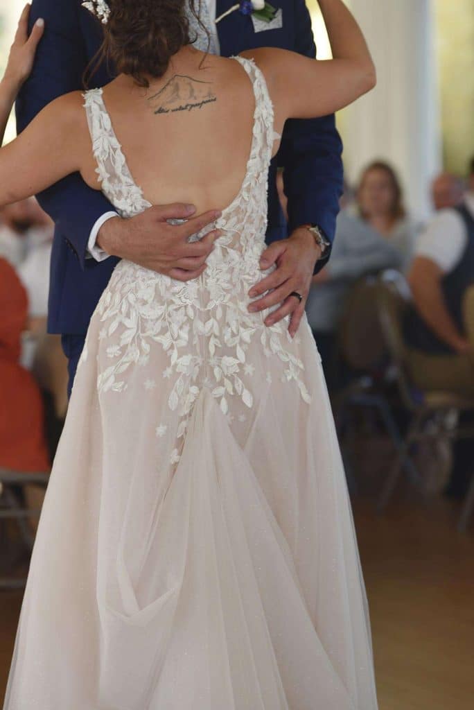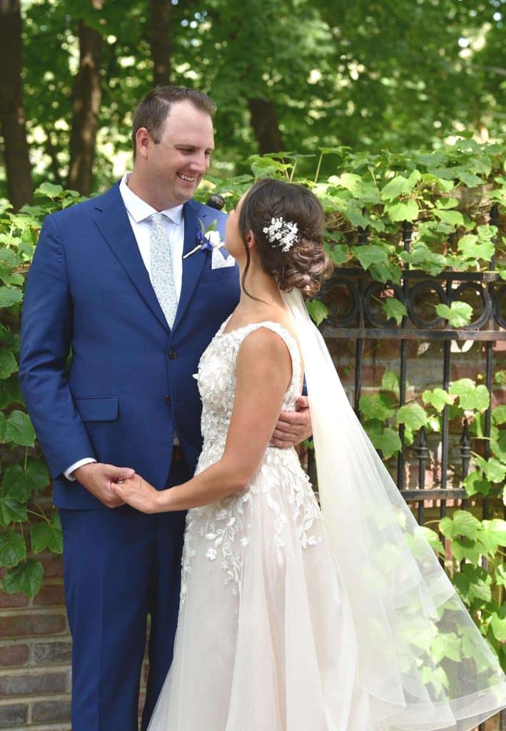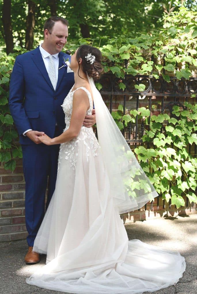 Kylee found her dream wedding dress online from BHLDN, the bridal brand of Anthropologie. She had saved the dress on her Pinterest board years ago and fell in love with it. When she had learned that the brand discontinued the style, she was bummed, but was hopeful she would find a similar dress in store. She went to BHLDN with her mom, mother-in-law, and a couple of her bridesmaids and found a few dresses that she liked but didn’t love as much as the one she had her eyes on for so long. She tried one other store and was underwhelmed there, too. Then, one of Kylee’s friends recommended looking at second hand dresses. Lo and behold, a woman in Florida was selling the dress – in her size! The seller’s wedding had been canceled because of the pandemic, so she never wore it. The moment the dress arrived, Kylee put it on and burst into tears. “I’d never felt more beautiful in my life.”