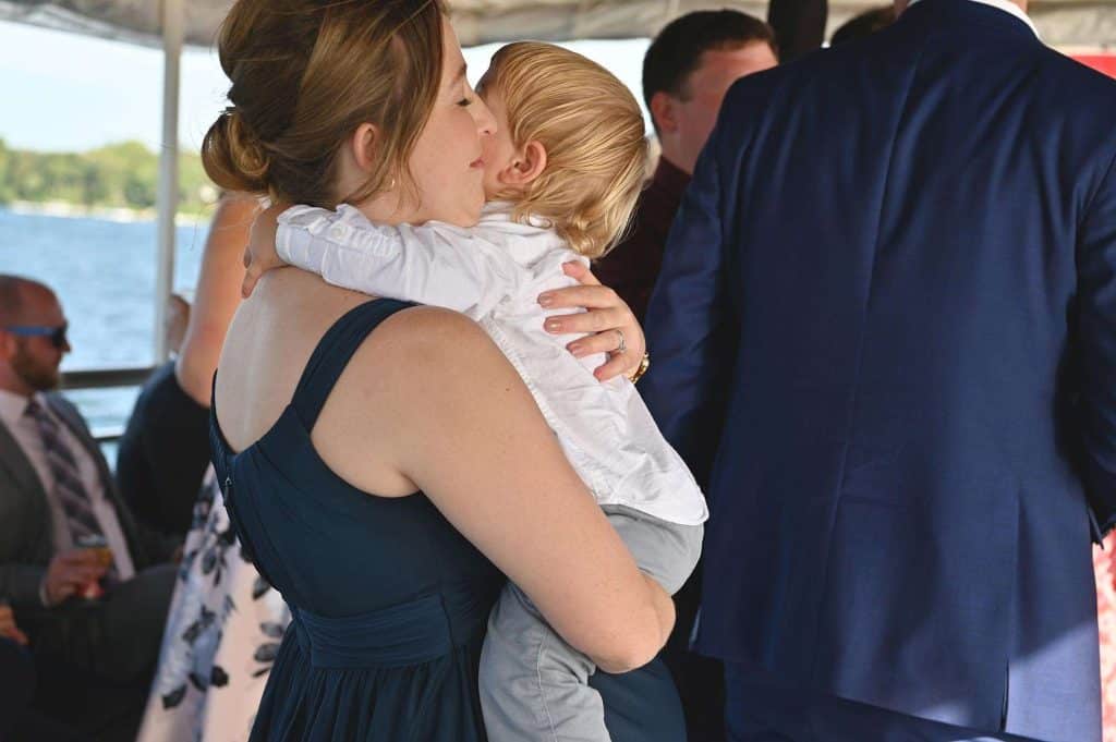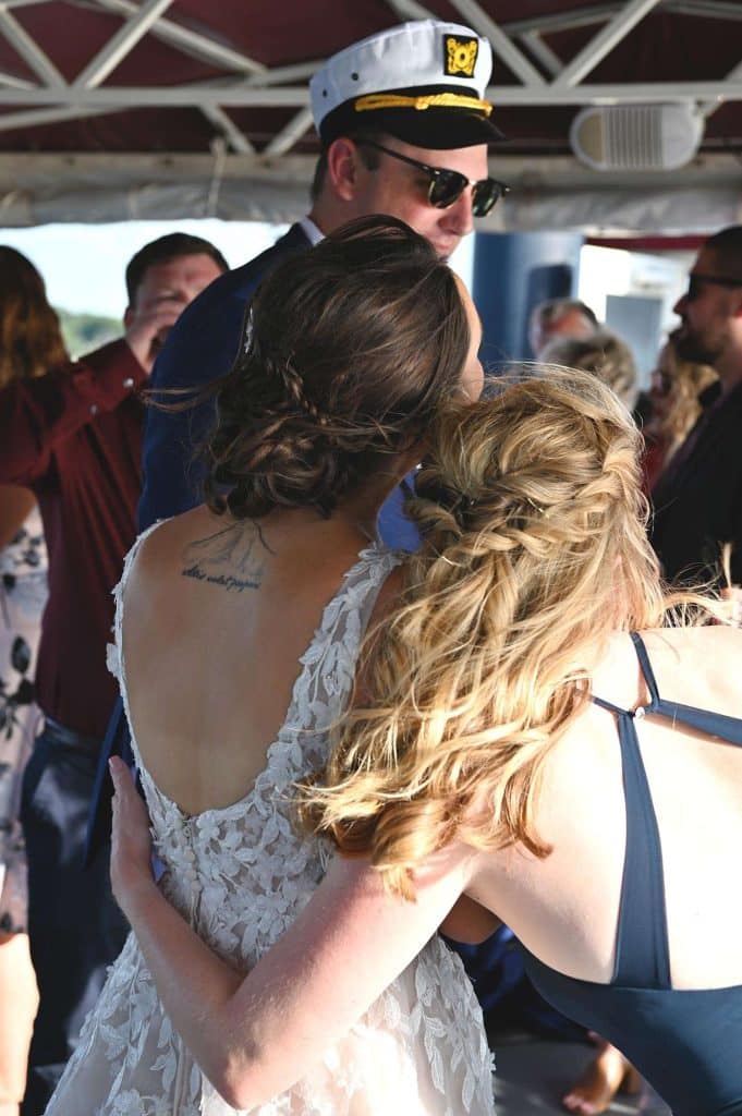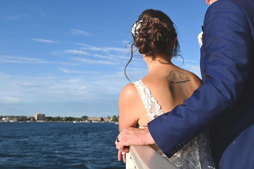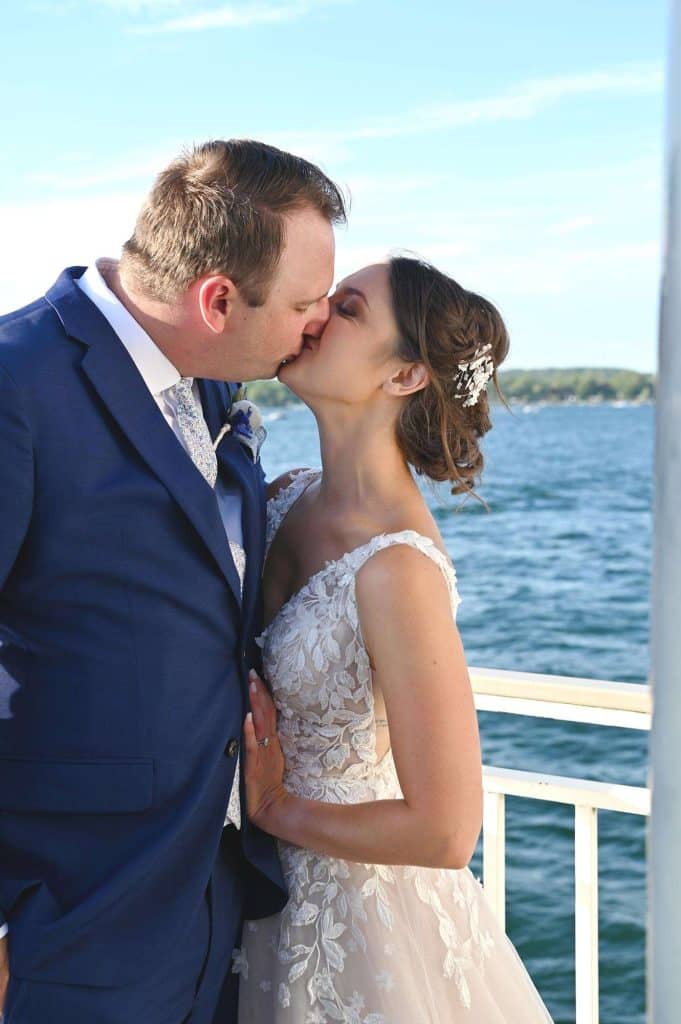 While the room was being prepared for the reception, the newlyweds and their guests embarked on an hour-long cocktail cruise of Lake Geneva provided by Lake Geneva Cruise Line – a fun and unique way to kick off the remainder of the evening. The party was, indeed, a lot of fun for everyone present. The couple’s main goal was to genuinely enjoy their day and spend quality time with their guests as well as with each other. Kylee and Nick stood at the front of the buffet to hand every single guest their dinner plates, which guaranteed face time and brief conversations with everyone. After dinner, they spent hours on the dance floor together, which was exactly what they wanted.