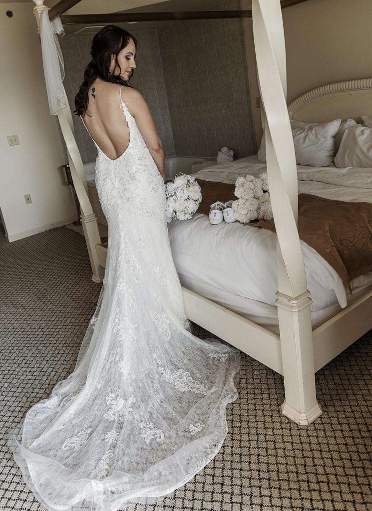Kylie found her wedding dress at All About the Gown in Lake Geneva. It was the first dress she tried on, and she fell in love immediately.