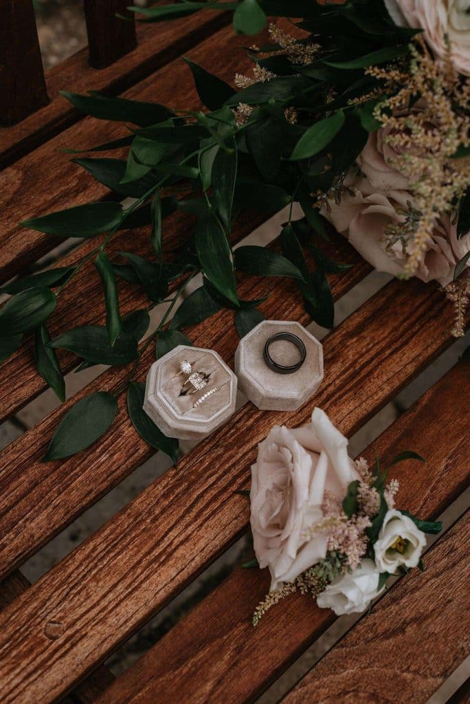 Jess and Tommy fell in love at first swipe. When they met on Hinge, they realized they shared a handful of mutual friends and would sometimes be at the same events and parties but just never ran into each other. “The timing must have never been right, until it was!” Over the course of their relationships, they talked a few times about getting married one day. One day, the two took a trip to Madison to explore the city with their dog Ranger. Tommy insisted on getting a photo of them outside the capitol building. When Jess handed the phone over to a total stranger to snap the picture, Tommy got down on one knee!