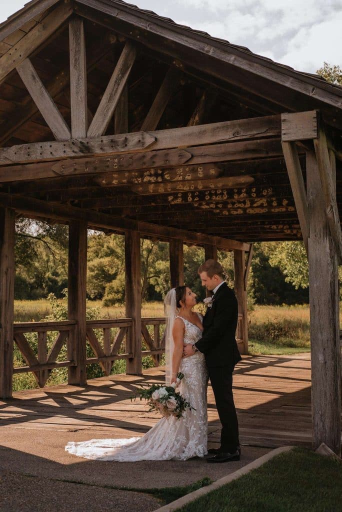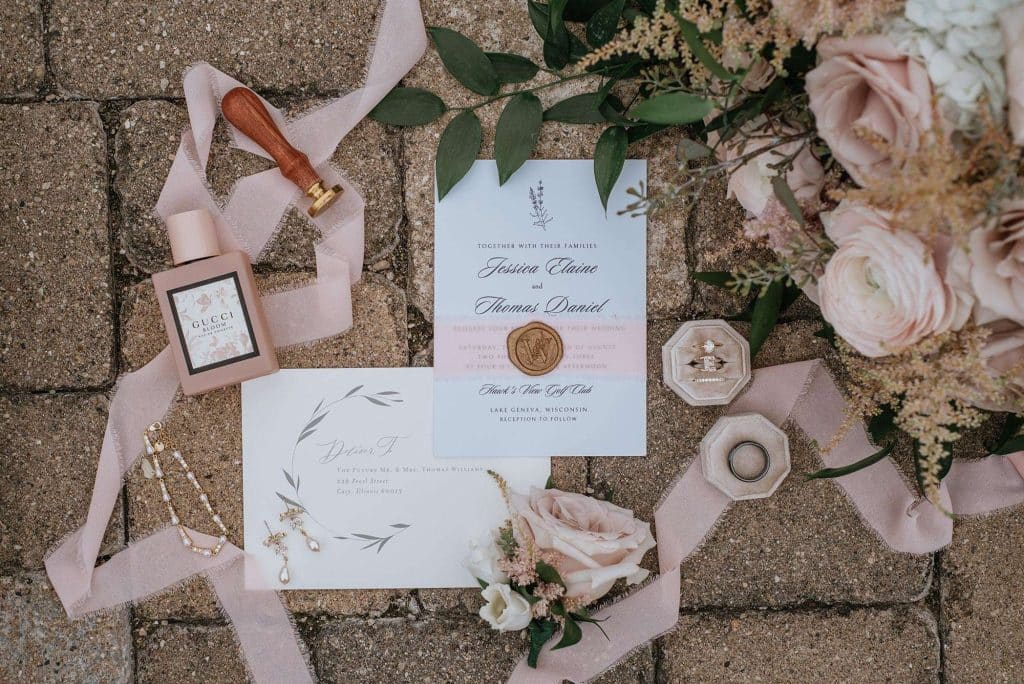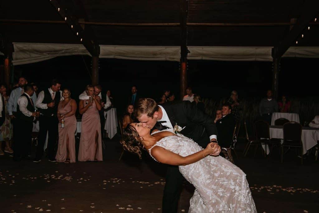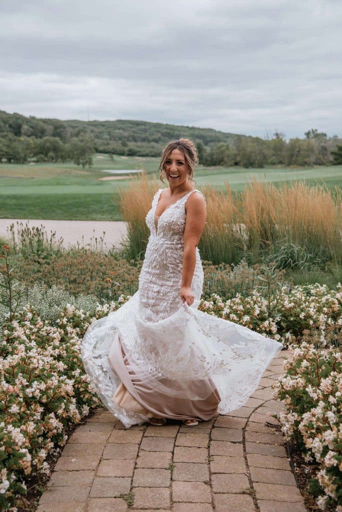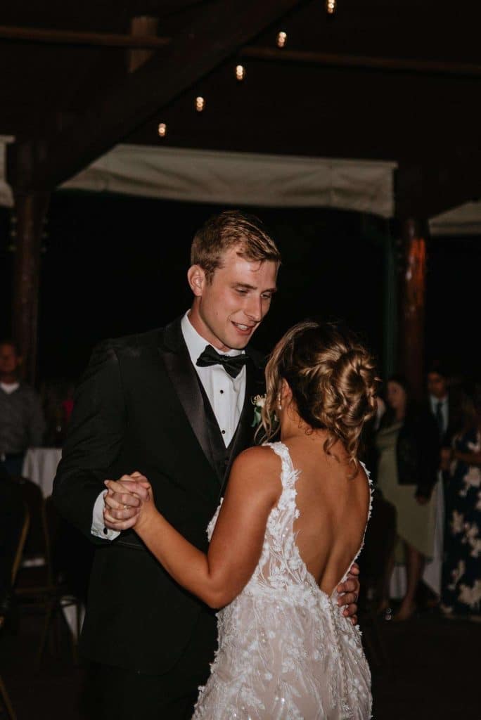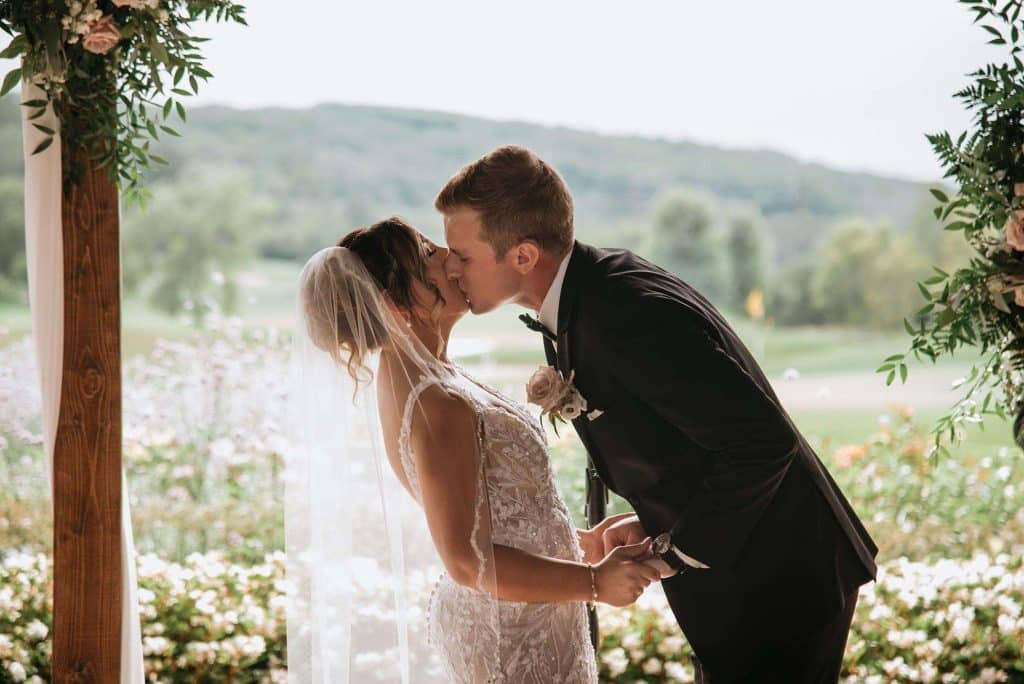 Jess and Tommy had their wedding at Hawk’s View Golf Club in Lake Geneva on a perfect 75º August day. The venue boasted an absolutely stunning view and amazing scenery, which is still one of the couple’s favorite memories from the day. The newlyweds shared their first dance as a married couple to “First Times” by Ed Sheeran. During the reception, the dance floor was outside under the pavilion. Guests loved being able to enjoy the weather throughout the evening as they relaxed and danced to music from Delta Disc Jockeys. After the best day of their lives (so far), Jess and Tommy honeymooned in Fiji at the Nanuku Resort.