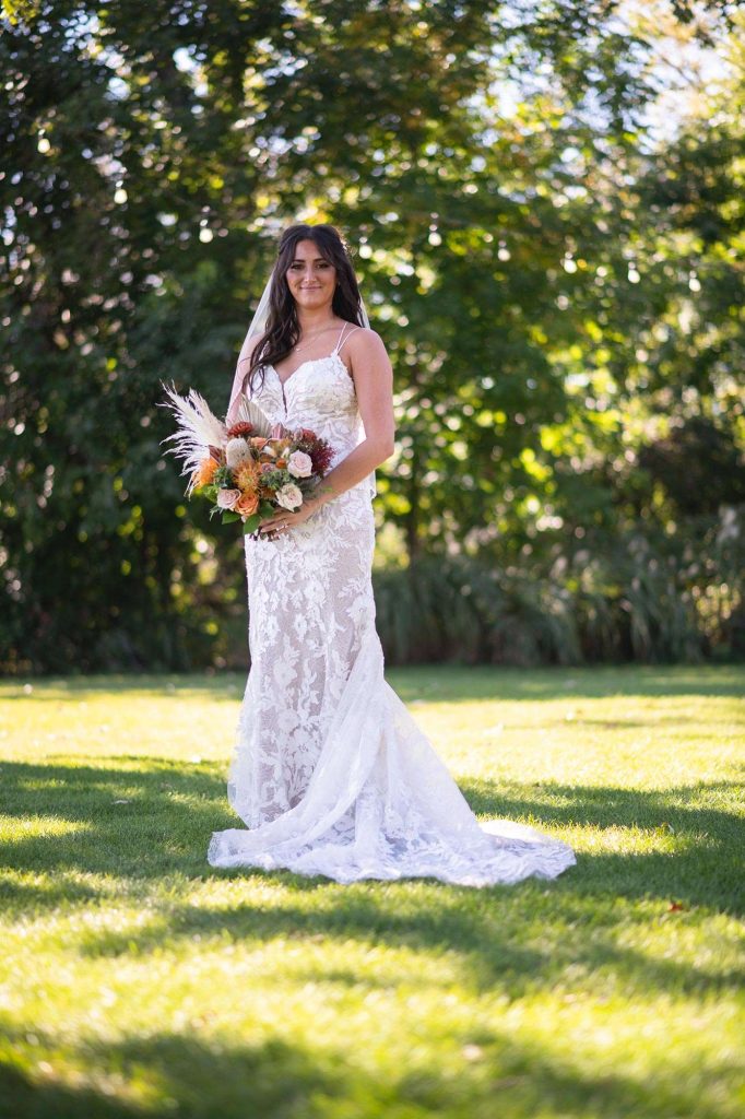 Sydney bought her designer All Who Wander dress at Bon Bon Belle, in Burlington, WI. She was admittedly very picky about her dress, trying on almost 20 dresses! She knew that she did not want to settle, and she knew that when she saw the one, she would know. She was right. “I knew it was the one from the moment I even saw it on the hanger, before the people I brought with me saw it I said it was the one; it was me, it had everything I was looking for, and it was actually comfortable!”