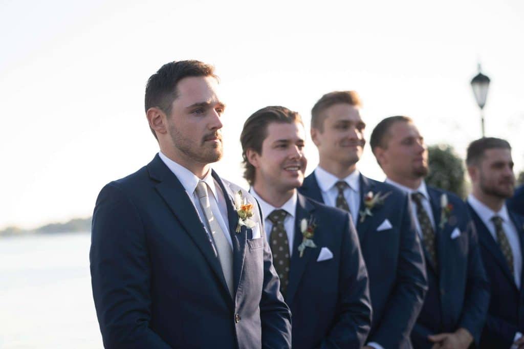 Austin and Sydney had just bought a house together and the day after they had moved in, their families had planned to get together for dinner at one of their favorite restaurants on the lake. Austin told Sydney that he had gotten a text saying that their families were going to be a little late, so he suggested they walk down to the pier where they saw a couple working on their boat, along with one of the lake tour boats. Austin asked Sydney to remind him what sorts of events the tour boat hosted and as she went down the list and said weddings, he interrupted saying “Well, it’s so funny you talk about weddings because…” “I turned around and he was on one knee. The rest of what was said was a blur!” After I said yes Austin pointed out that the couple working on the boat were actually our photographers who had captured the entire thing and our families came hooting and hollering out of the restaurant to congratulate us!”