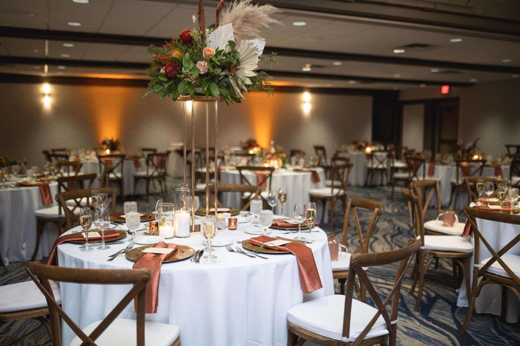 Sydney and Austin chose Lake Lawn Resort in Delavan, WI for both the ceremony and reception. They loved the view, the cleanliness, the staff, and the fact that the resort allowed guests to have all they needed on location – no need to worry about drinking and driving.
