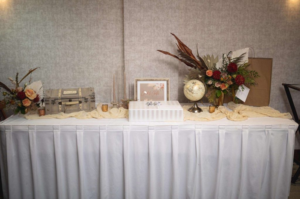 A unique addition to the wedding was from on of the vendors, Parker Drive. They were able to create a little lounge in the reception space that people could use for photos and to look at the pictures of the loved ones who weren’t able to make it. They were even able to “have a drink” with them since they had put each person’s favorite drink and items reminiscent of who they were by him/her.