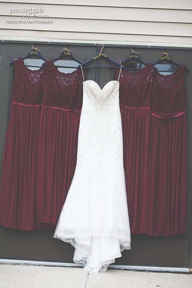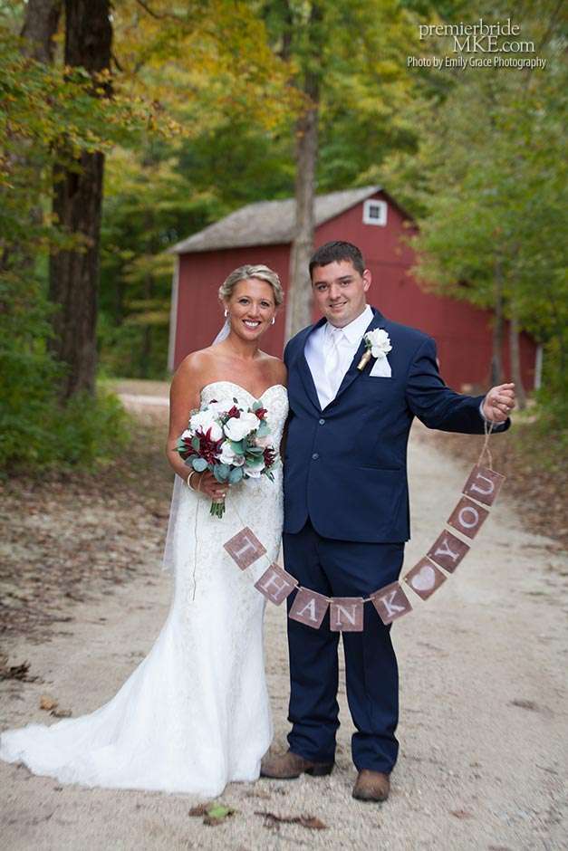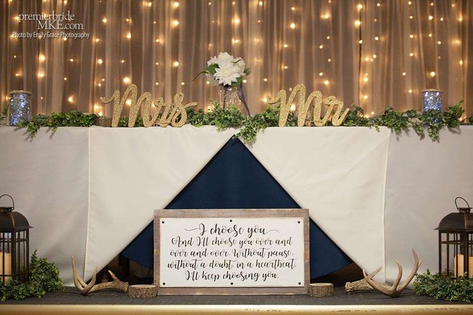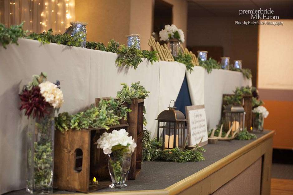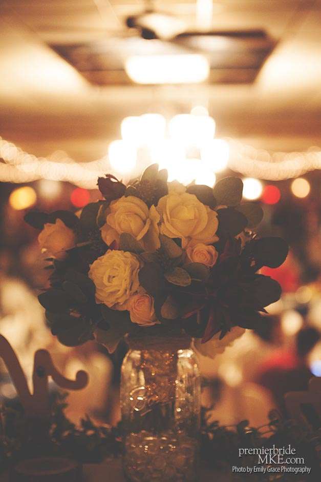 Laura turned to a lot of DIY projects and wedding resale pages on Facebook to find special pieces and decorations to bring her vision to life. She even bought her wedding dress off the rack for a great deal. Steve’s formalwear came from Tres Chic in Menomonee Falls — ”highly, highly suggested; everyone we worked with was helpful and the guys looked amazing!”