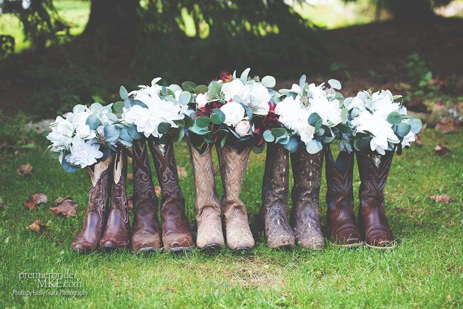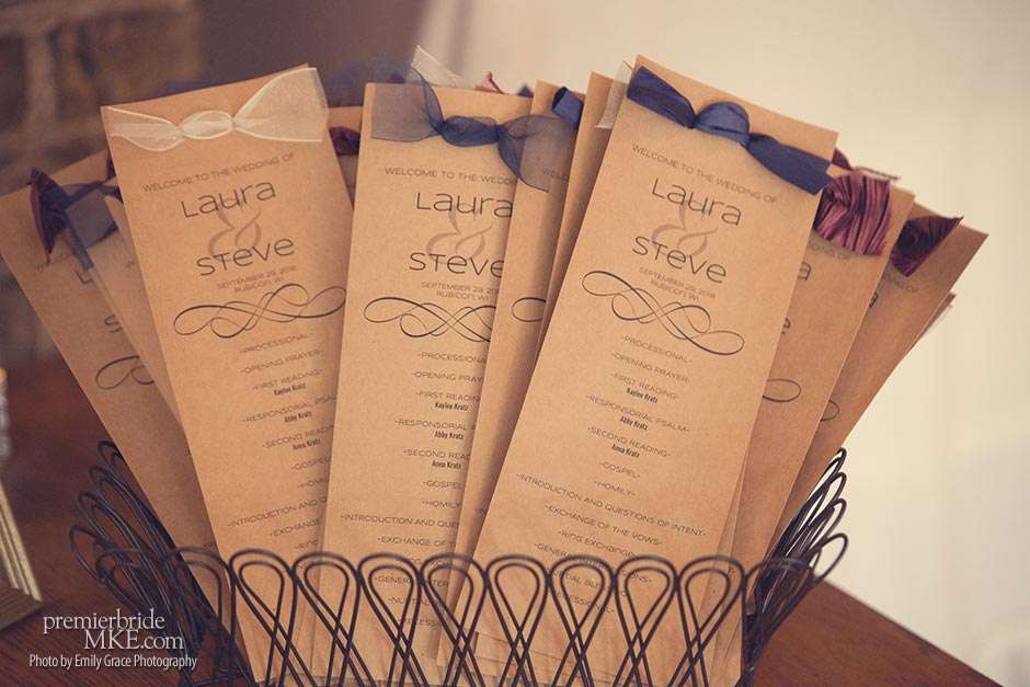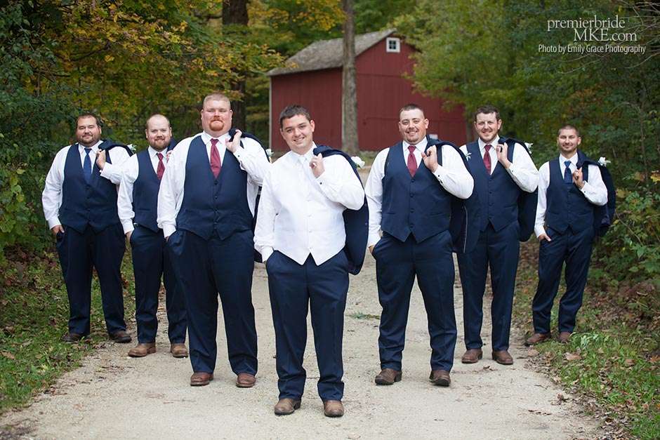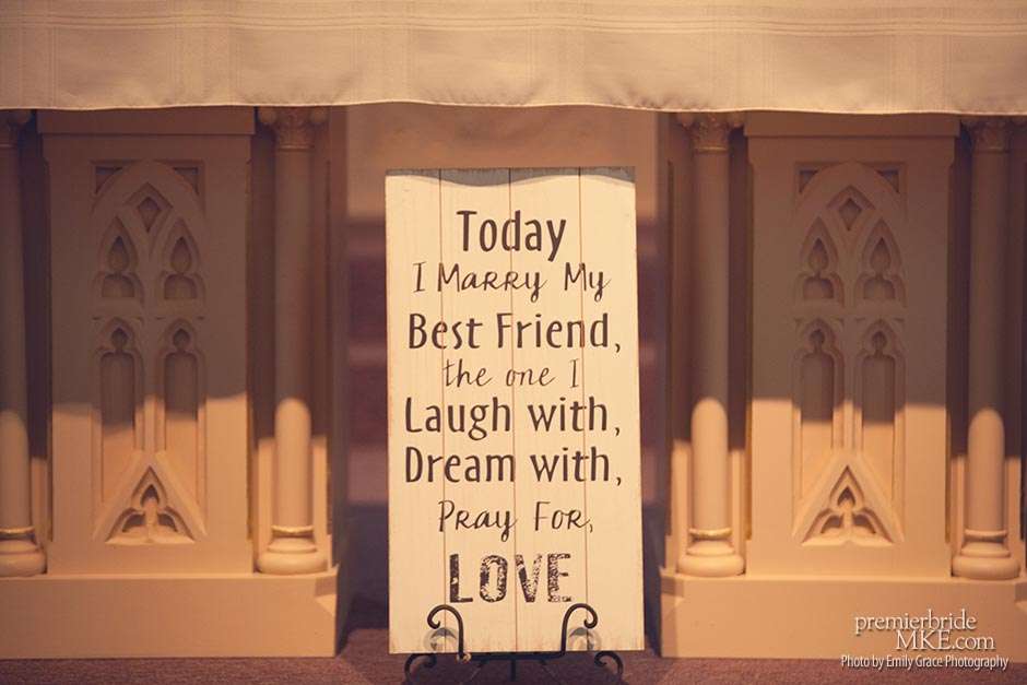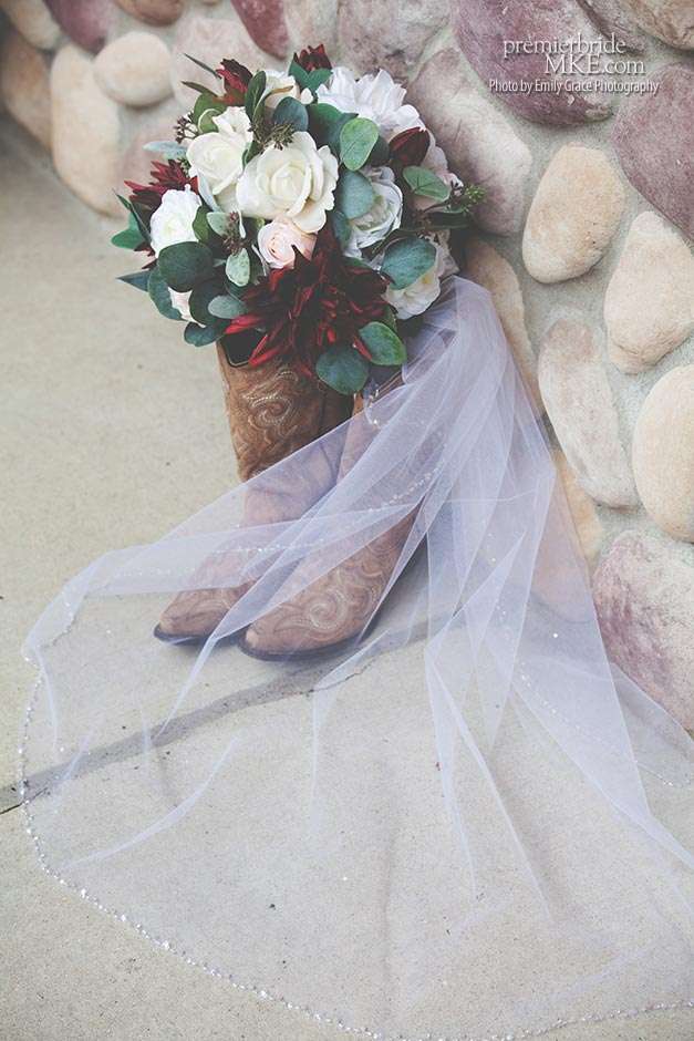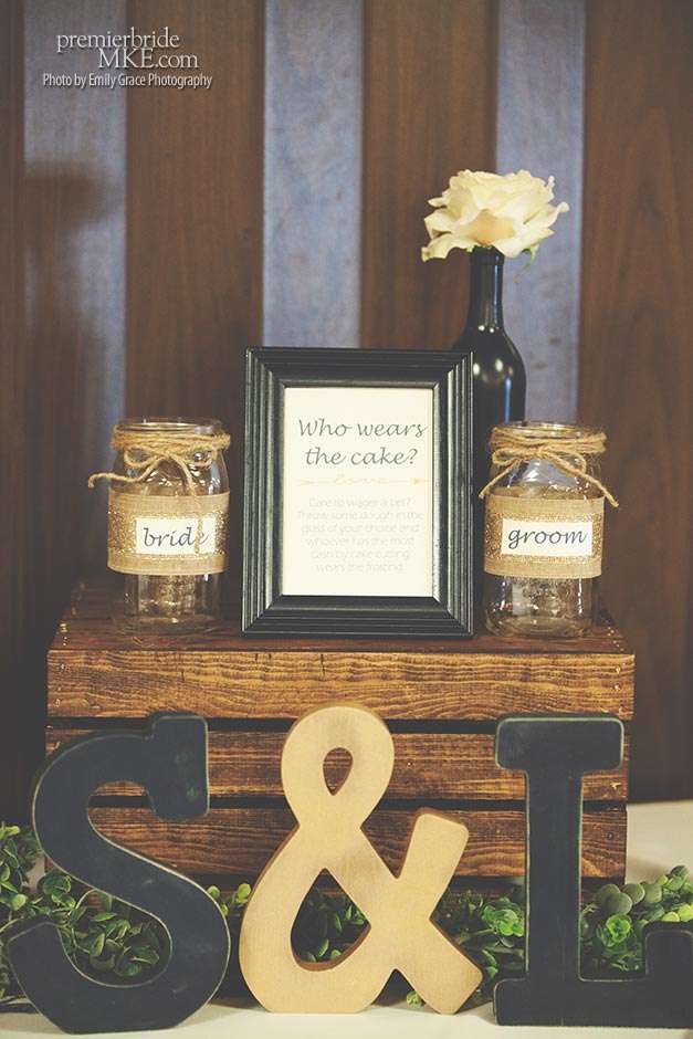 Laura turned to a lot of DIY projects and wedding resale pages on Facebook to find special pieces and decorations to bring her vision to life. She even bought her wedding dress off the rack for a great deal. Steve’s formalwear came from Tres Chic in Menomonee Falls — ”highly, highly suggested; everyone we worked with was helpful and the guys looked amazing!”