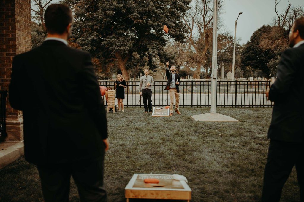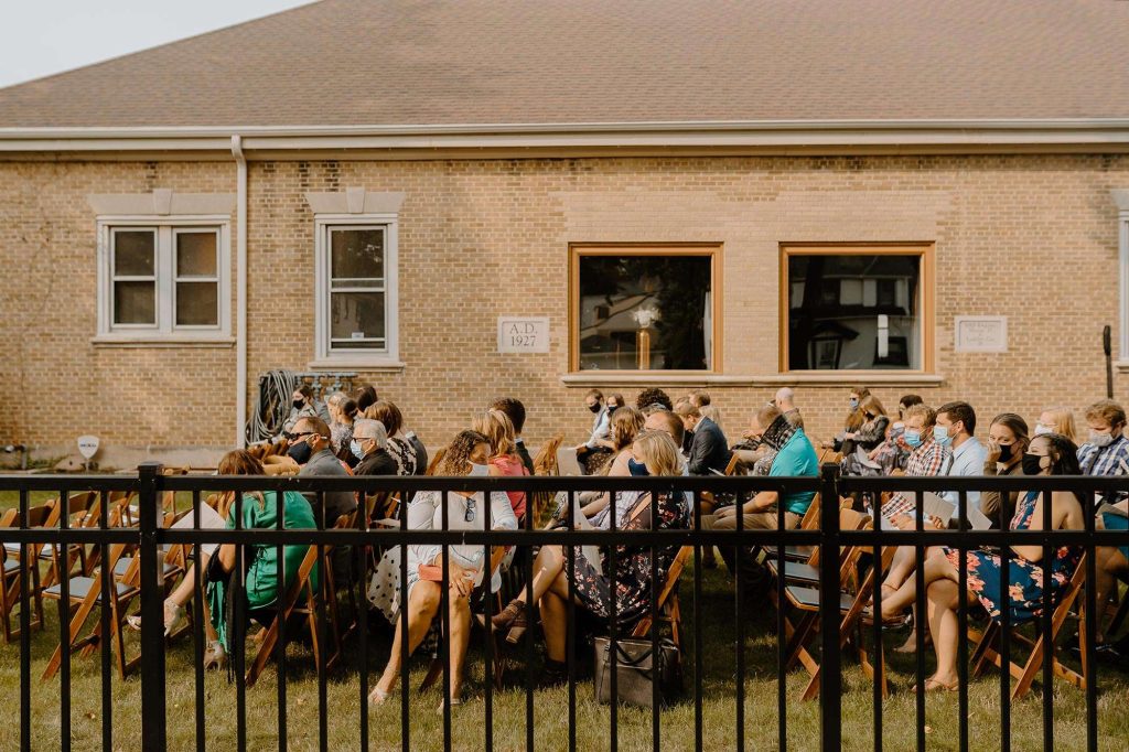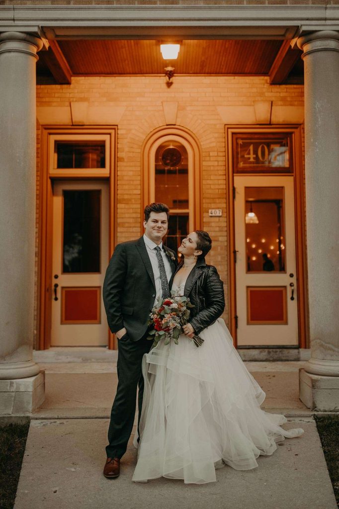 When the Milwaukee County Parks cancelled their events in light of Covid, Lisa and Schuyler had to find a new wedding venue. Enter Story Hill FireHouse, a historic venue perfect for hosting both the ceremony and reception. “We were able to go right from the ceremony to the cocktail hour to the reception without a break in the middle. We did our ceremony on one end of the lawn and had the cocktail hour on the other end of the lawn. Dinner was in the engine bay of the firehouse, where you’re able to open the large bay doors to have an open-air feel.”