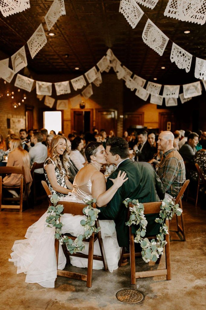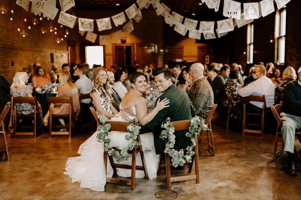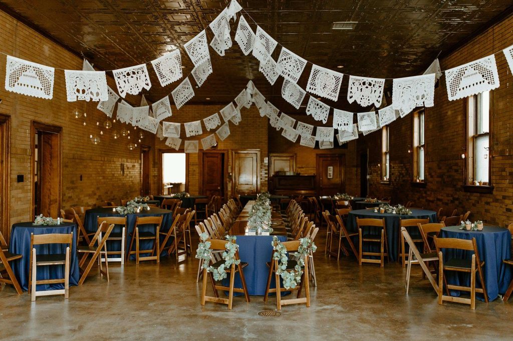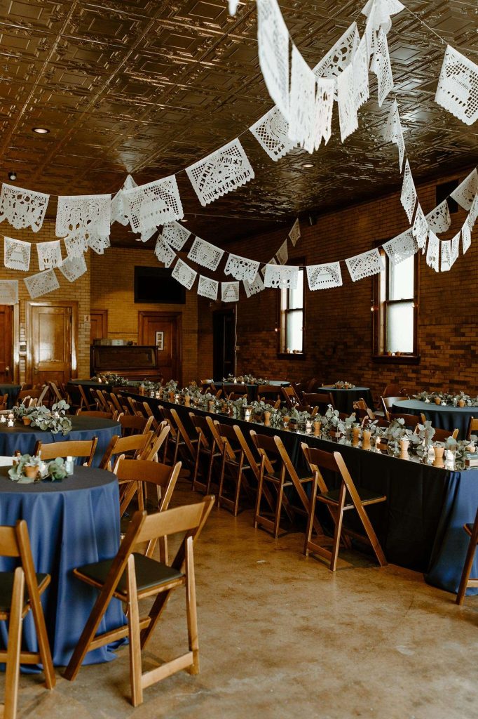 Following cocktail hour on the lawn, guests made their way inside the Firehouse for dinner. Because Schuyler is the GM at Café Corazon–Bay View and Lisa speaks fluent Spanish and has lived and traveled all over South and Central America, they knew they wanted tacos for food. “Our décor mixed small touches of Latin America too, including papel picado banners and cacti and succulents on the tables, which people could take home as their favor.”