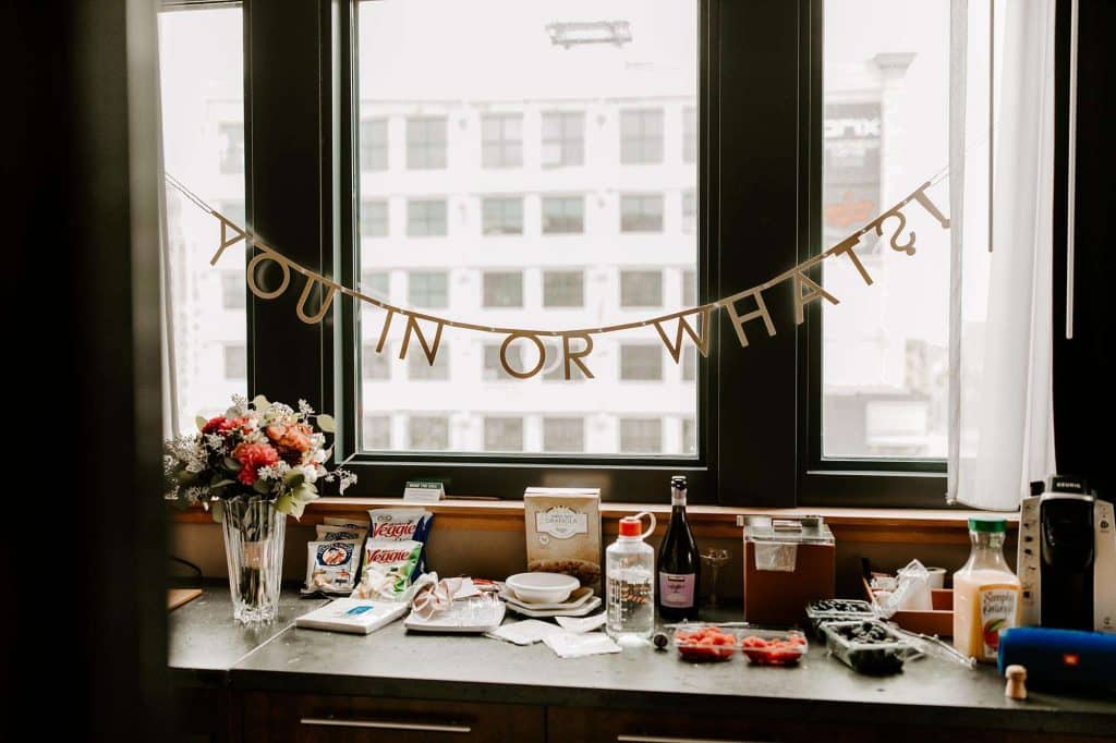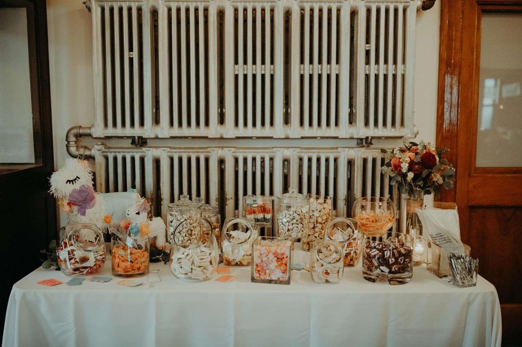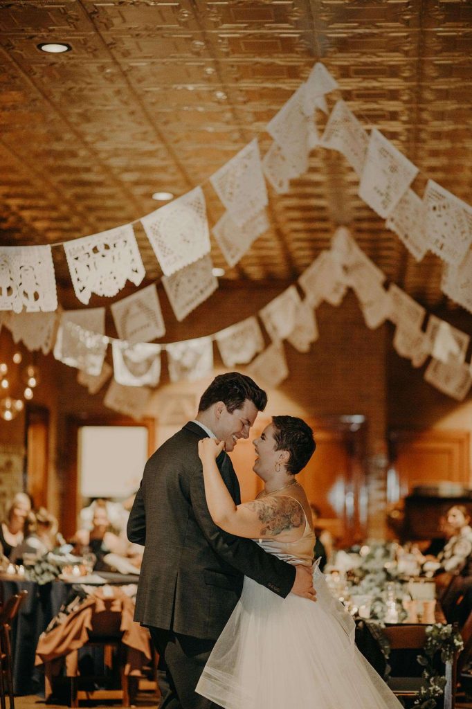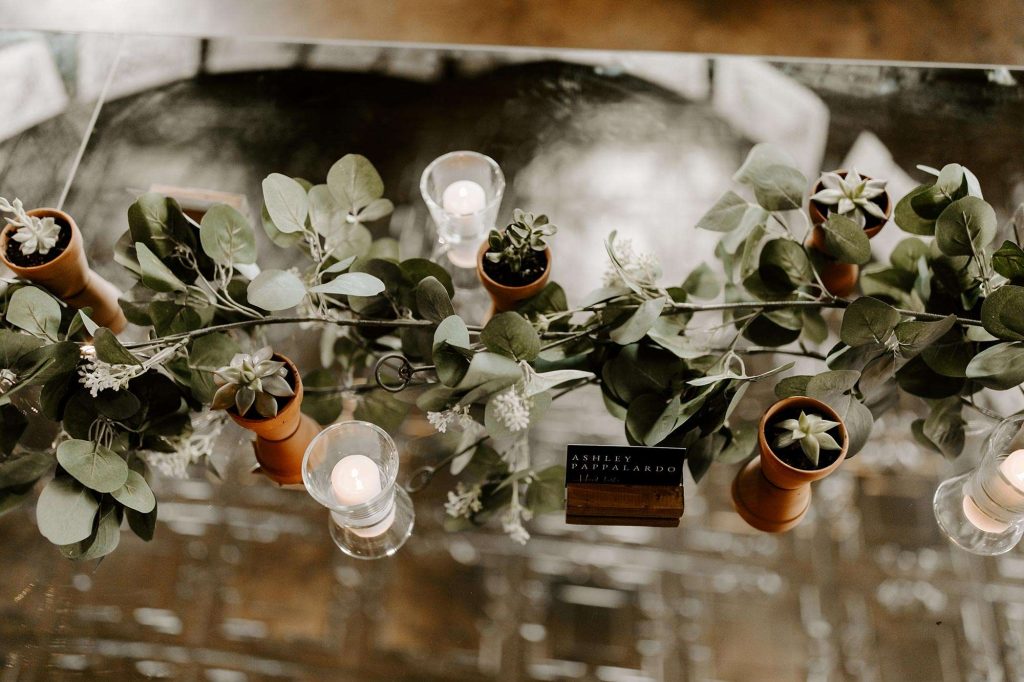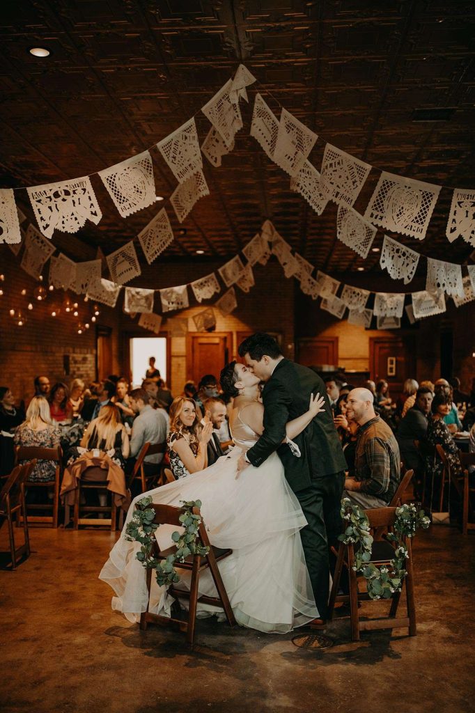 Following cocktail hour on the lawn, guests made their way inside the Firehouse for dinner. Because Schuyler is the GM at Café Corazon–Bay View and Lisa speaks fluent Spanish and has lived and traveled all over South and Central America, they knew they wanted tacos for food. “Our décor mixed small touches of Latin America too, including papel picado banners and cacti and succulents on the tables, which people could take home as their favor.”