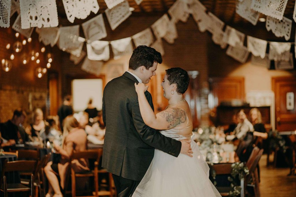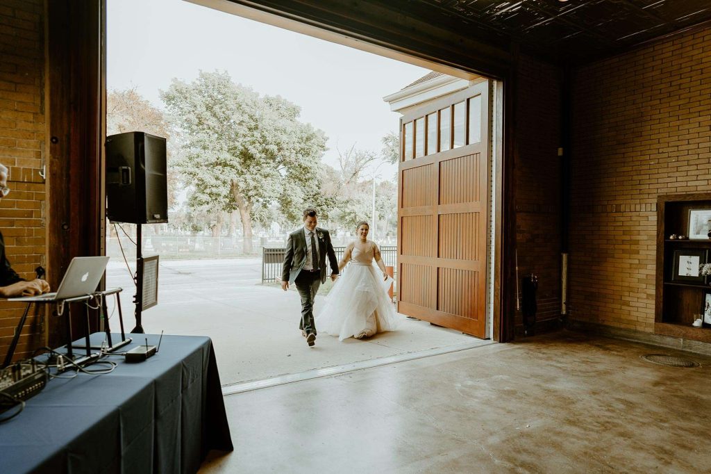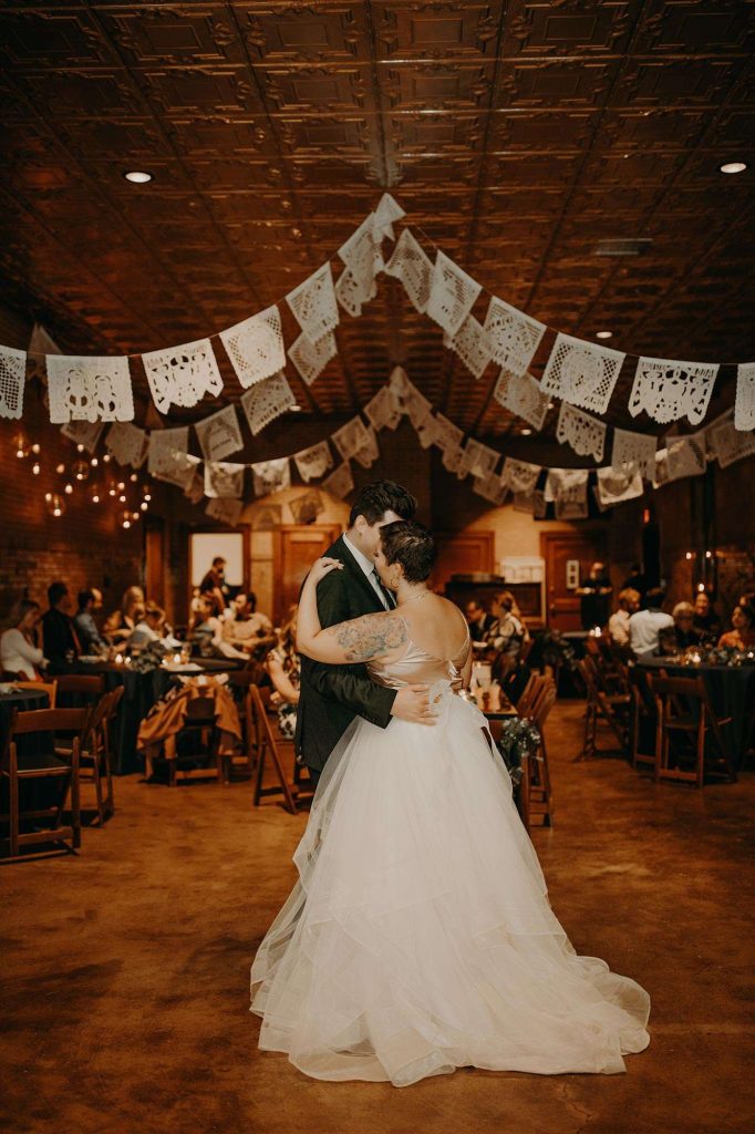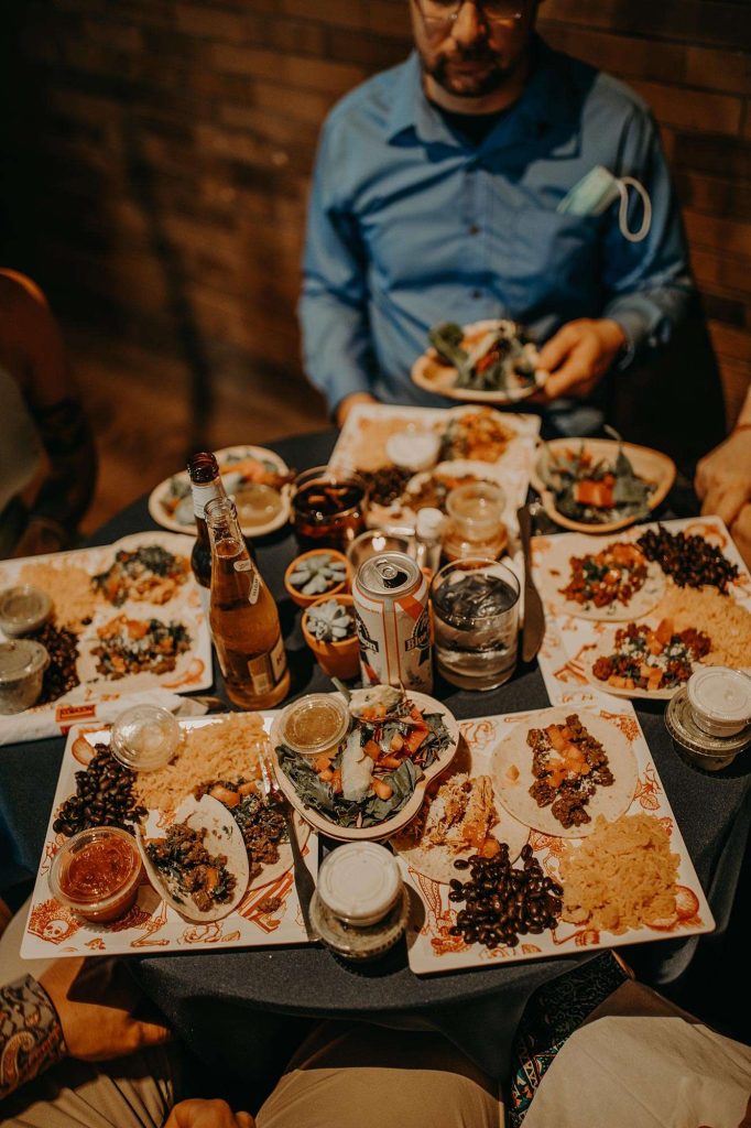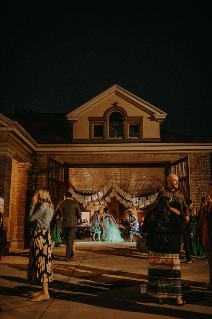 Dessert kept to the theme with Tres Leches cake. All drinks were provided by Story Hill. “They have a very affordable bar package. No special or signature drinks—we like to keep it simple.” After dinner and dessert, the giant doors to the Firehouse were opened so there was more space and air. “The outside became an extension of the reception space. It was such a cool way to let people spread out again. It’s also pretty awesome to have both the indoor and outdoor experience throughout the entire night.”