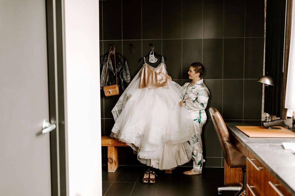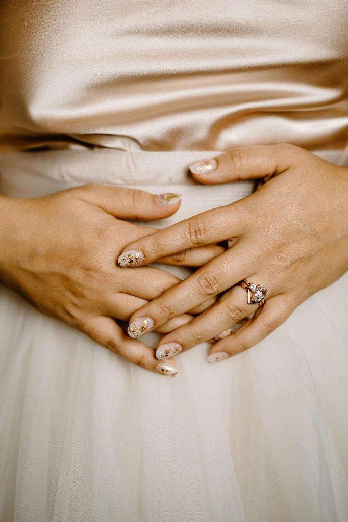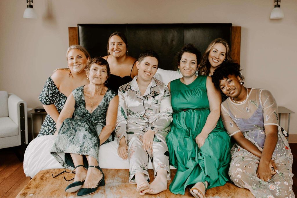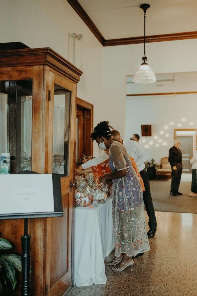Safety was the top priority. “We were very open with family and friends that if anyone was exposed to Covid19 or had symptoms to alert us before the wedding day—and to not feel bad for not coming. We had a whole page on our website dedicated to our precautions for Covid so that people knew exactly what they were walking into.”
