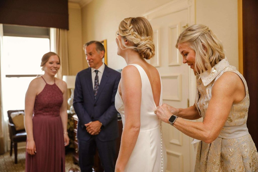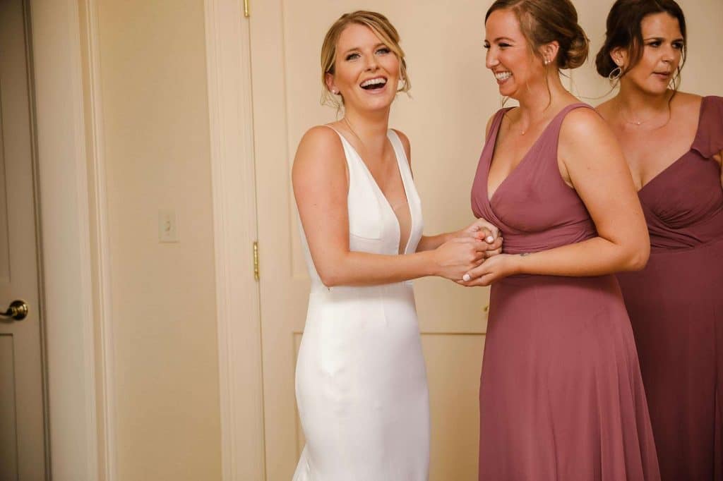 Before finding her perfect dress, Madeline tried on about 20 gowns and visited multiple bridal shops. “I had a totally different vision of what I thought I wanted my dress to be. But with the help of the amazing staff at Bella Bianca, I put on my dress and knew it was the one. I was lucky enough to be surrounded by my mom, aunt, sister, and all my close friends. It was such fun finding the one and celebrating with a pop of champagne.”