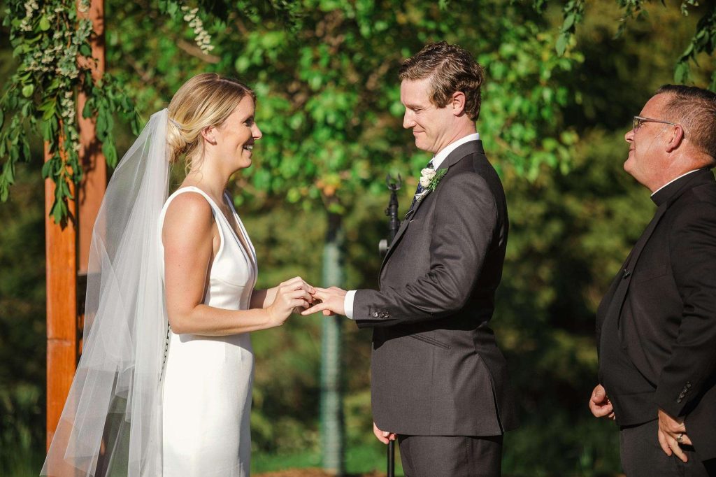Because Madeline and Josh wanted an outdoor ceremony for their guests, they were actually married in their church a couple months prior to their Barn at The Bog ceremony. “We were lucky enough to have our priest, Father Wayne Watts, come officiate the Bog ceremony.”The bride and groom have nothing but praise for their experience at The Barn at The Bog: “We fell in love the moment we saw it. We couldn’t recommend a venue more. Maggie and Mike Hammes have done an amazing job. The Barn that they built was what our dreams were made of for a wedding venue. With the addition of the outdoor ceremony site, it was absolutely perfect. Plus the staff and management are the best to work with and made all our wedding dreams come true.”