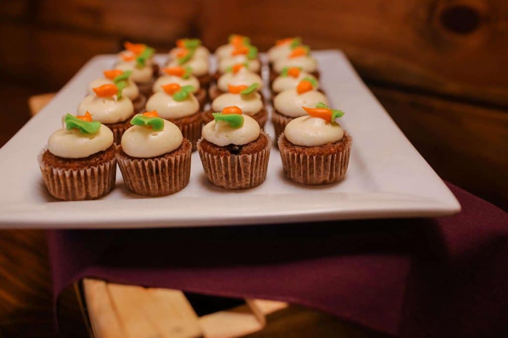 Dinner and drinks came courtesy of The Bog. For food, there was a harvest salad with roasted butternut squash, candied pecans, cranberries, and balsamic vinaigrette. Entrees included a choice of filet mignon or roasted salmon served with green beans and garlic mashed potatoes. For late-night food, there was chicken tenders, mini corn dogs, sliders, and cheese curds.Dessert featured mini cupcakes in flavors of raspberry lemon, brownie, carrot cake, and cookies & cream. There was also a simple vanilla cake with strawberry filling. Guests were treated to an open bar with specialties of Veuve Clicquot Yellow Label Brut Champagne, Clark and Telephone Pinot Noir, and a signature spicy margarita. “We loved having the endless amounts of Veuve along with amazing food and drinks from The Bog!”