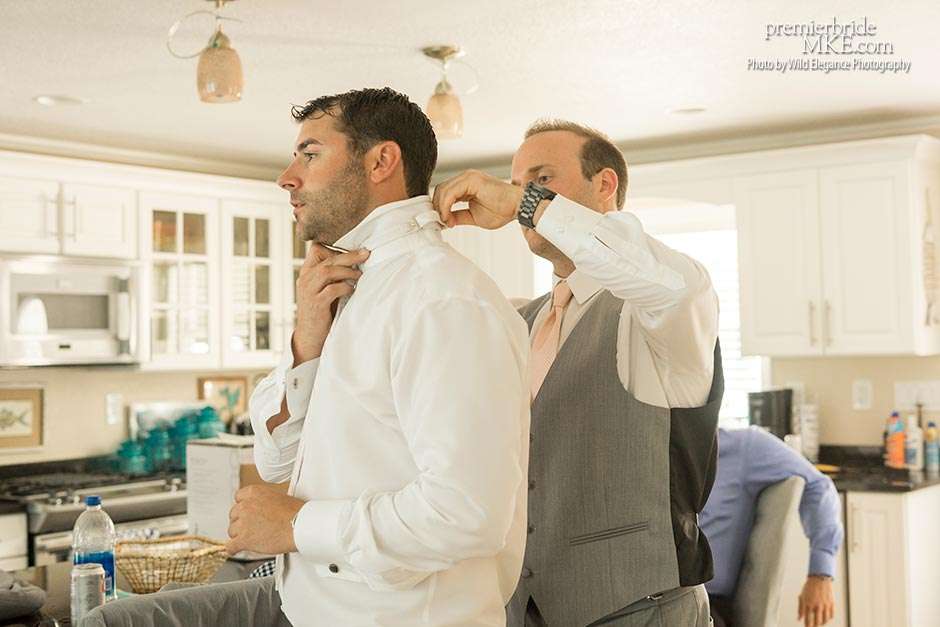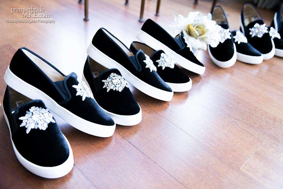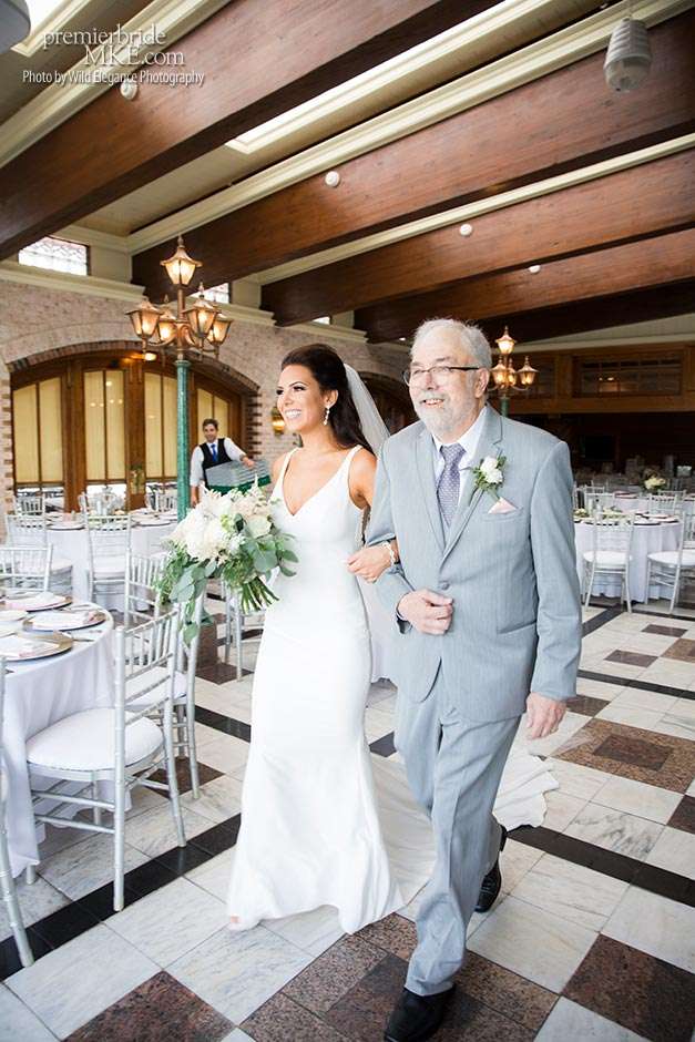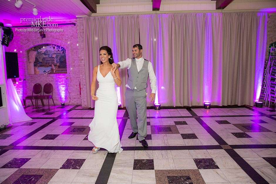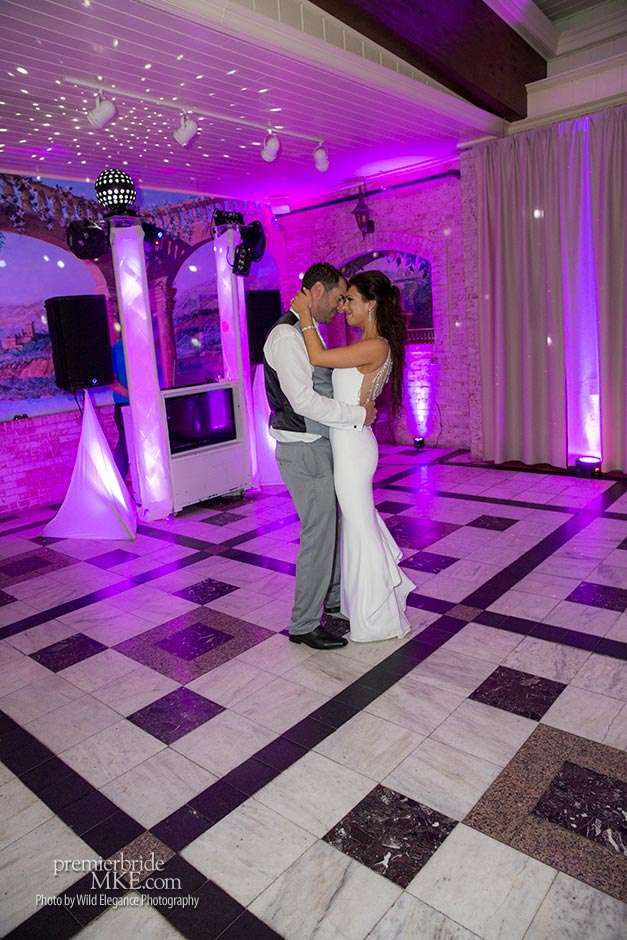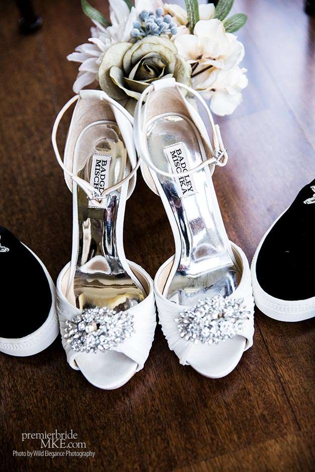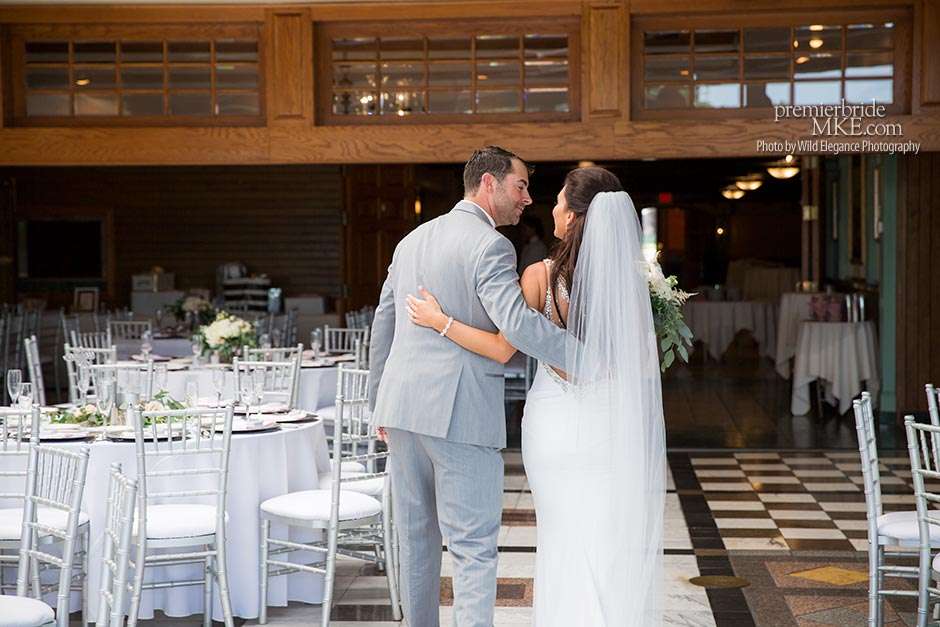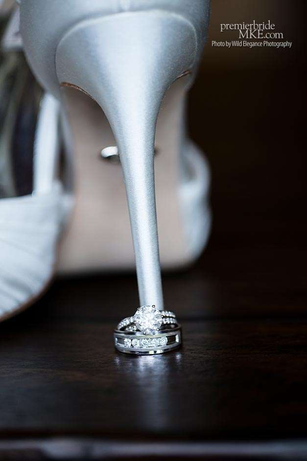 Maggie found her Enzoani wedding gown at White Dress — a boutique that, she says, really made the experience one to remember. “The boutique is fabulously decorated and the dress selection far exceeds any other bridal store in Milwaukee,” Maggie says. “The customer service was stellar. I felt like such a princess while I was trying on dresses. I knew exactly what I wanted: something simple with tasteful bling.” Maggie’s gown was just that — a simple silhouette with bling on the back.