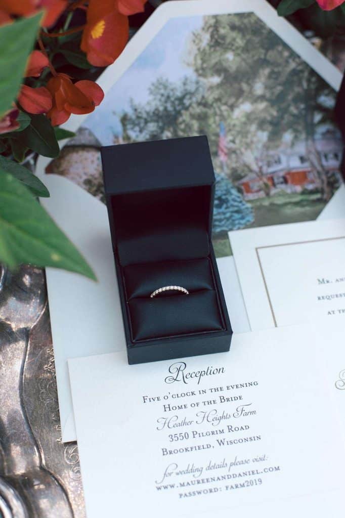 Daniel and Maureen planned a pre-pandemic wedding with a ceremony at St. Peter and Paul Church and a reception at Maureen’s family home. The home, Heather Heights Farm, is her parents’ now, but it’s also where Maureen’s mom grew up. “It is no longer a farm, but still has the farmhouse feel,” she says. Maureen’s parents also held their wedding reception at this house. “It was fun to carry on that tradition.”