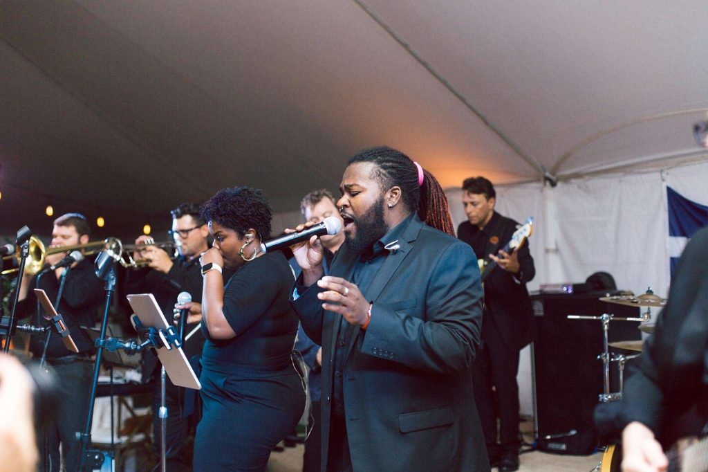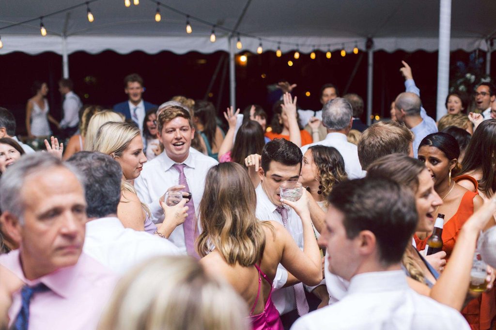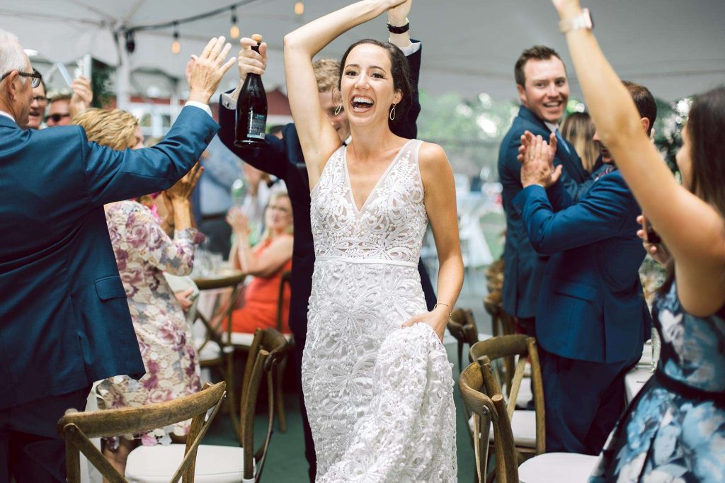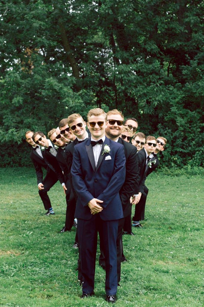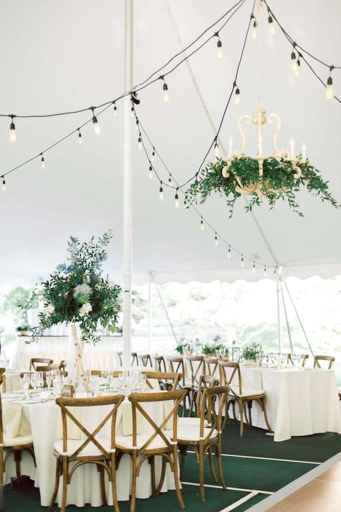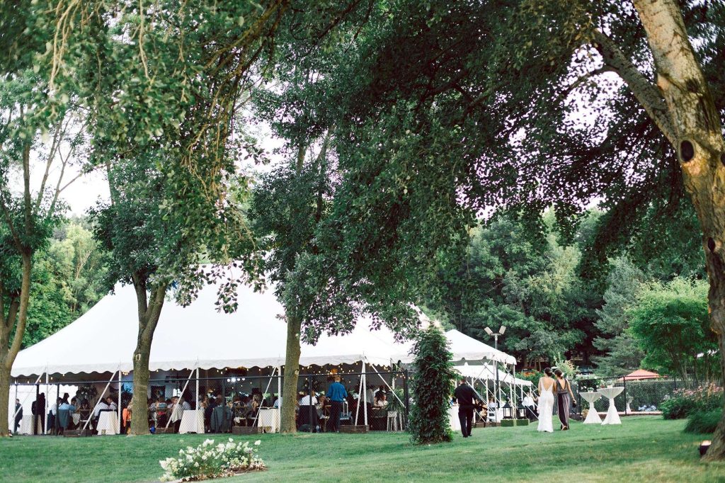 The vibe of the wedding was one of natural beauty, with colors of hydrangea, navy, and greenery. To bring together all the moving parts of a wedding at home, Maureen and Daniel relied on événement as their wedding consultant. Maureen found her gorgeous gown (with a killer train!) at Bucci’s Bridal. Daniel’s suiting came courtesy of DuBois Formalwear.