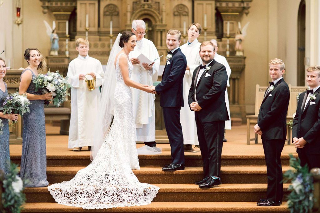 A highlight of the church ceremony was the tribute to Daniel’s mother, who passed away when he was young. “One of the groomsmen, Colin, is a singer and musician. He played Daniel’s mom’s favorite song ‘Poems, Prayers, and Promises’ by John Denver.” Daniel and his maternal grandmother walked into the ceremony to this song, pausing together along the aisle just to listen to the music.