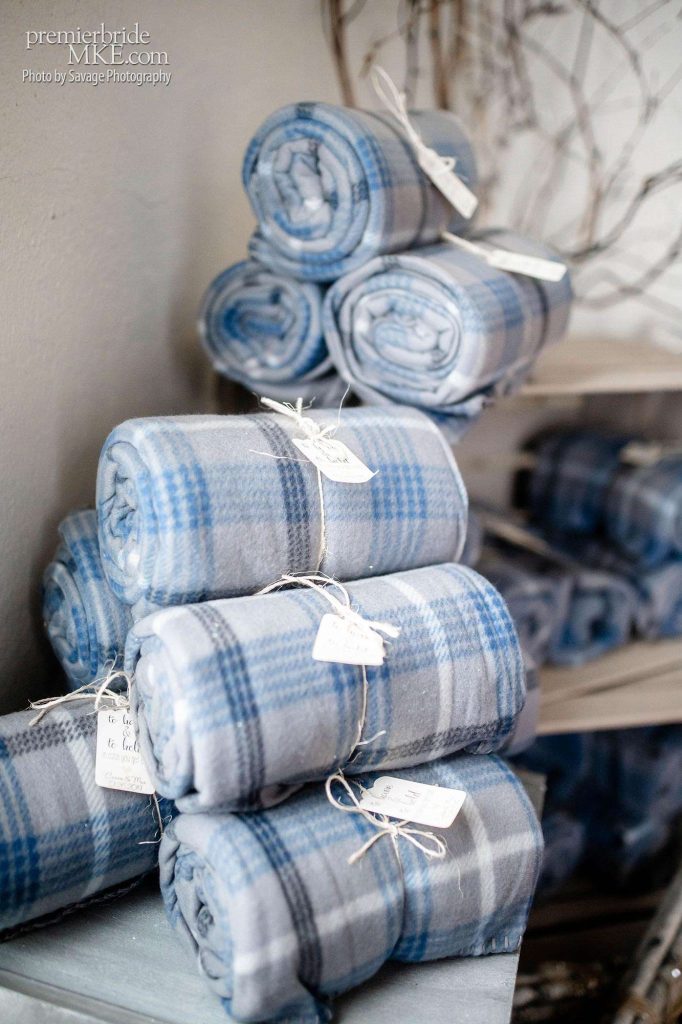 In addition to the more grand reception decor, Cassie also handled the centerpieces, photo tables, and party favors: hot cocoa and marshmallows in a jar with a tag that said “Thank you SNOW much!” She also came up with a fabulously unique alternative guest book. Instead of a book, there was a small artificial Christmas tree on display. Guests were invited to sign an ornament and hang it on the tree. “Now every year we can put it up as another tree in our home.”