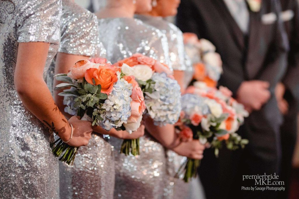 | Gown | Olig Cassini from David’s Bridal, Bridesmaid gowns from Amazon |