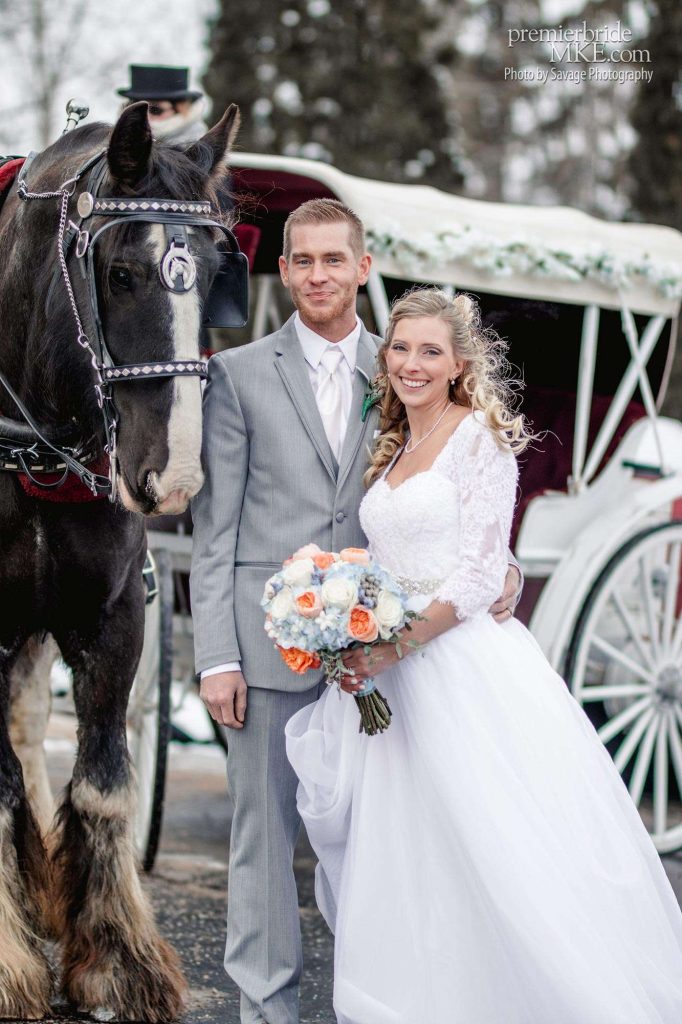 Cassie from West Bend and Max from Beaver Dam met at work. Max popped the question in the couple’s backyard, simple and sweet. The two decided on a late-January wedding with a ceremony at the Gardens Wedding Center and a reception at the Chandelier Ballroom.
