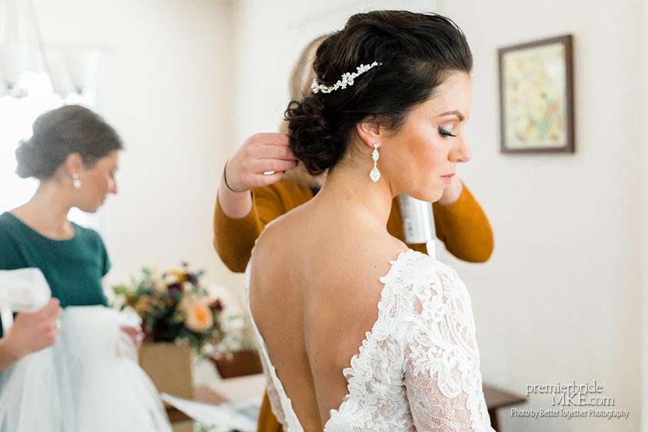 Owner of Bucci’s Bridal, Melissa was born and raised in Hartland, Wisconsin. She met her now-husband Jake, who grew up in Delafield, via Facebook. “He sent me a friendly message, which I didn’t think much of at first,” Melissa admits. “After a couple months, we chatted and decided to get a glass of wine and get to know one another. After our first date, that was it!”