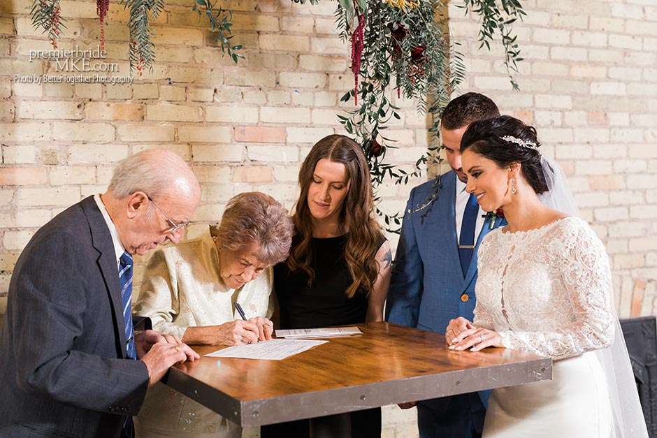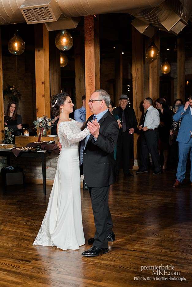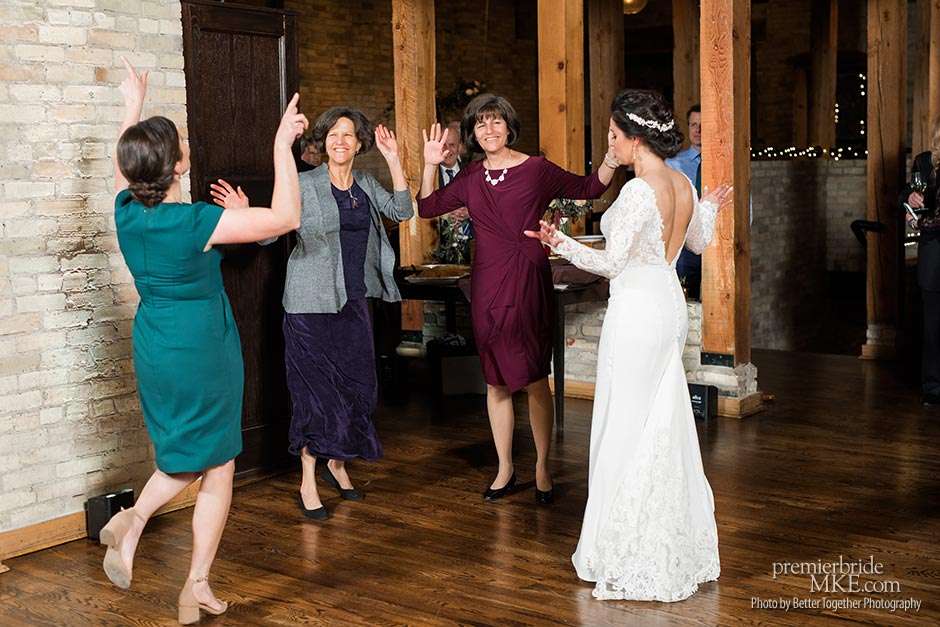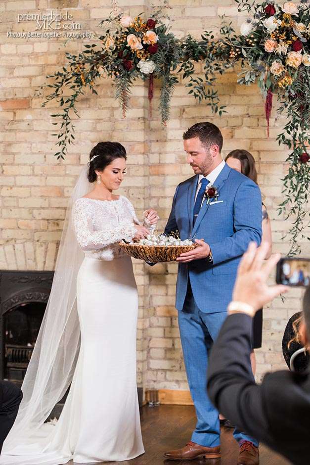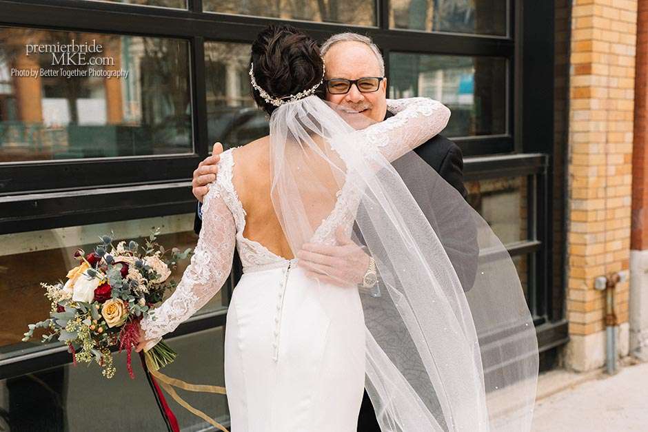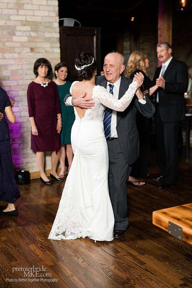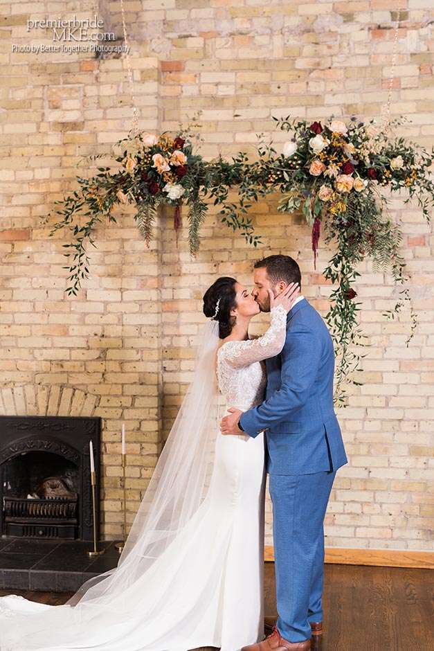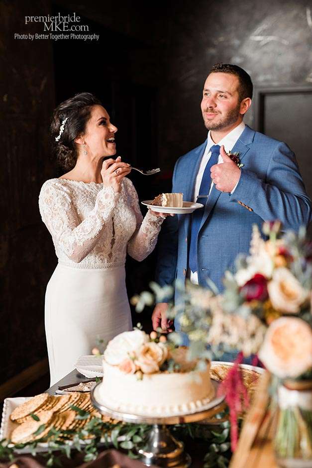 Jake and Melissa’s families are both Italian, so their wedding revolved around the culture that means so much to them. Both the ceremony and reception were held at Onesto in Milwaukee’s Third Ward. “Knowing how great their space is upstairs, it was an easy choice for a smaller wedding,” Melissa says. “We wanted a very small wedding with everything based around family, food, and Italian influence — and also my Armenian side.”