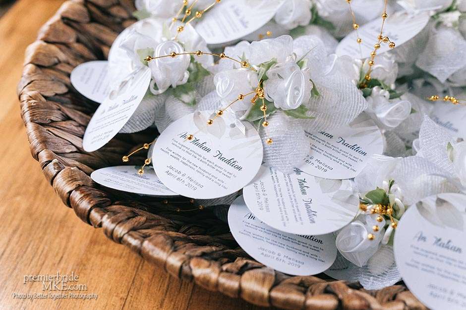 The Onesto ceremony welcomed 25 of Melissa and Jake’s closest family members. Since Melissa’s mom had passed away three years prior, they wanted to keep the wedding all about family, her memory, and bringing both sides together. Melissa’s cousin, Maria, is a youth minister and officiated the wedding. “She personalized our ceremony so it felt really memorable. We even had a part where we passed out Italian Bonbonniere, which is a traditional wedding favor.”