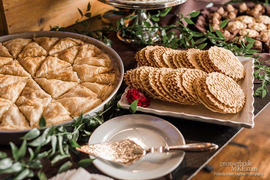 For dessert, Melissa’s dad made Pizzeles, an Italian cookie with an old family recipe, and Paklava, which is a family recipe from Melissa’s dad’s Armenian side of the family. The couple also got their favorite carrot cake from Mason Street Grill and had Krista from Weddings with a Twist decorate it with some flowers. Krista also acted as the day-of wedding coordinator. “She kept the whole thing running smoothly and was in contact with all of our vendors.”